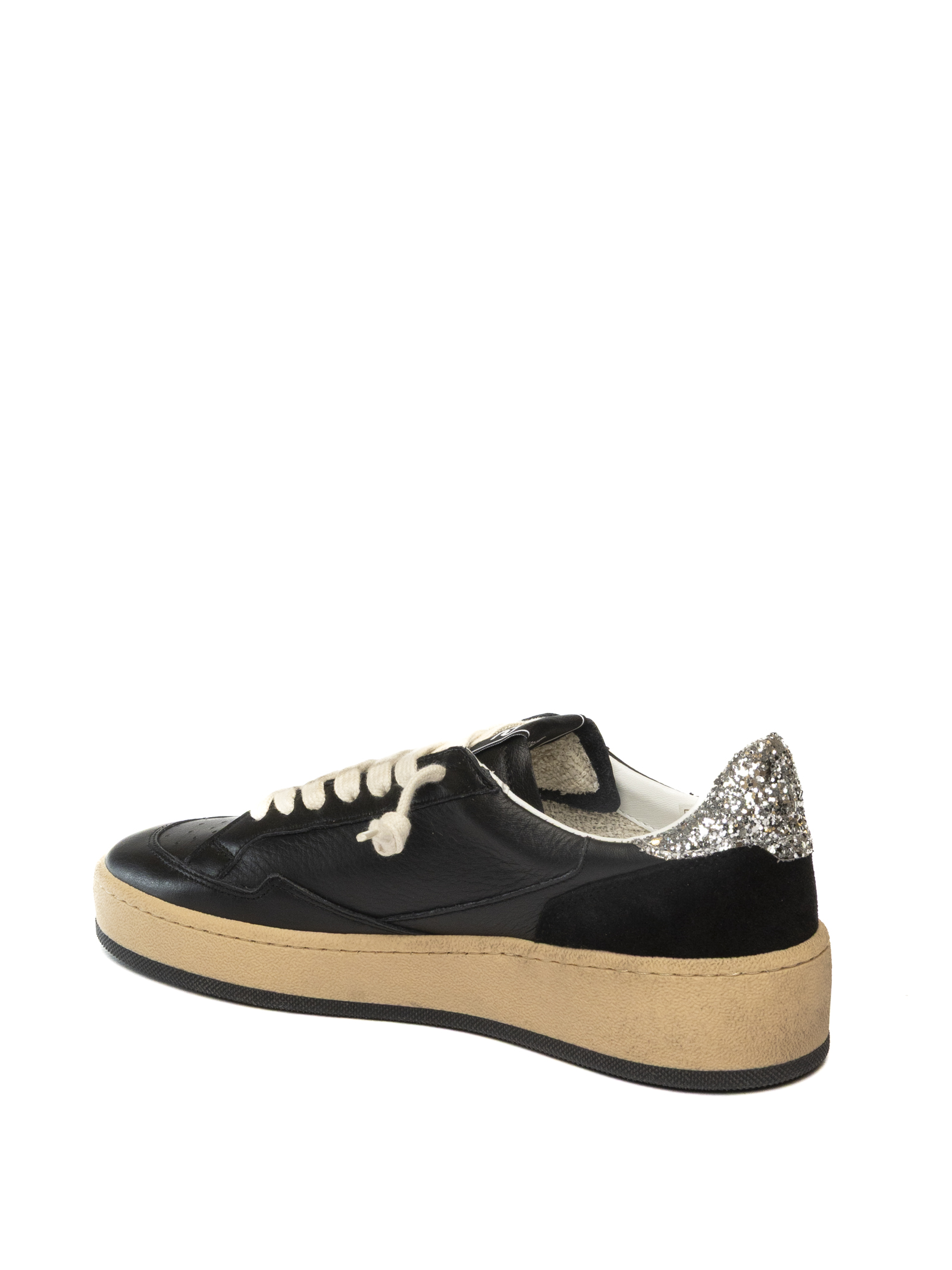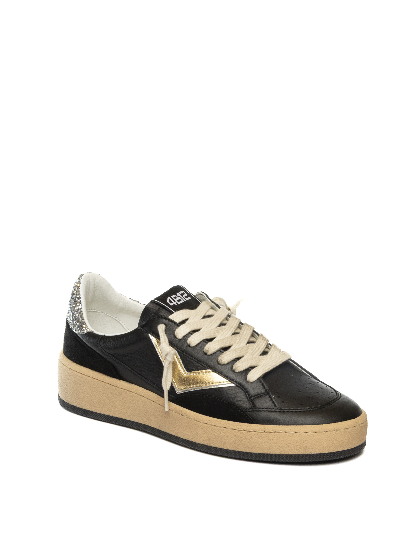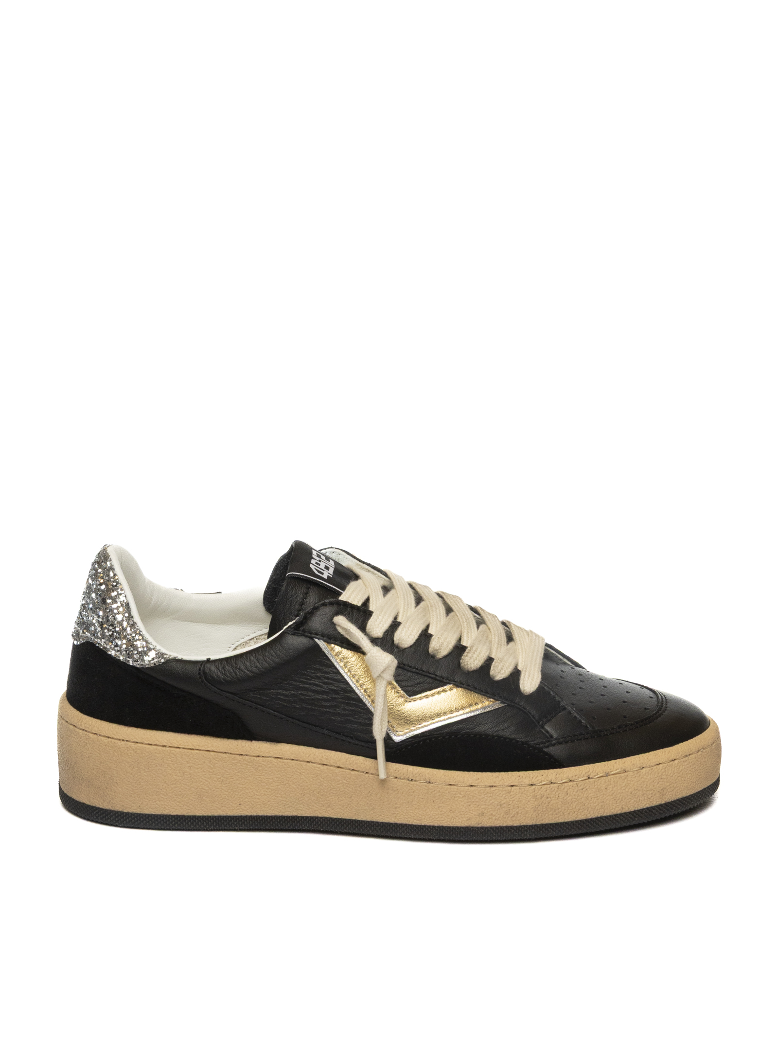 Contemporary 4B12 sneakers crafted from genuine leather and premium suede. The clean silhouette is elevated by silver laminated leather accents on the heel and side, adding a refined and modern touch. The breathable technical fabric lining ensures all-day comfort and freshness, while the padded leather insole provides a soft and stable fit. The lightweight beige rubber sole guarantees durability, grip and flexibility, making this sneaker a perfect companion for casual and urban-chic looks.