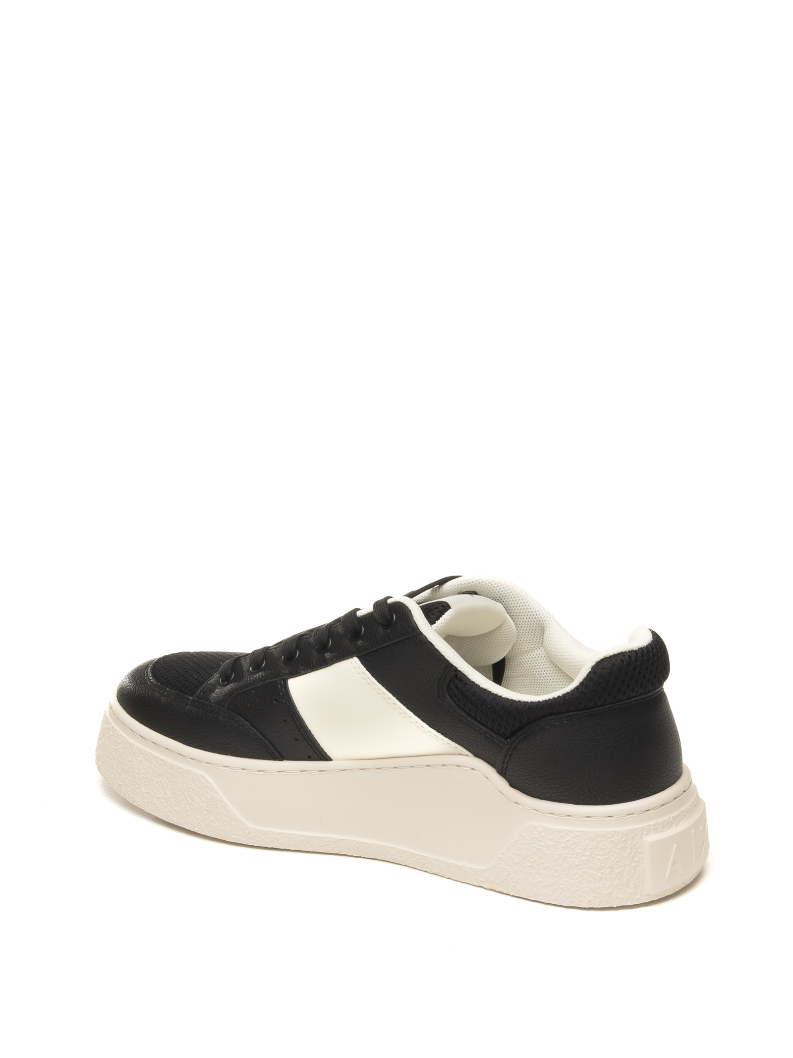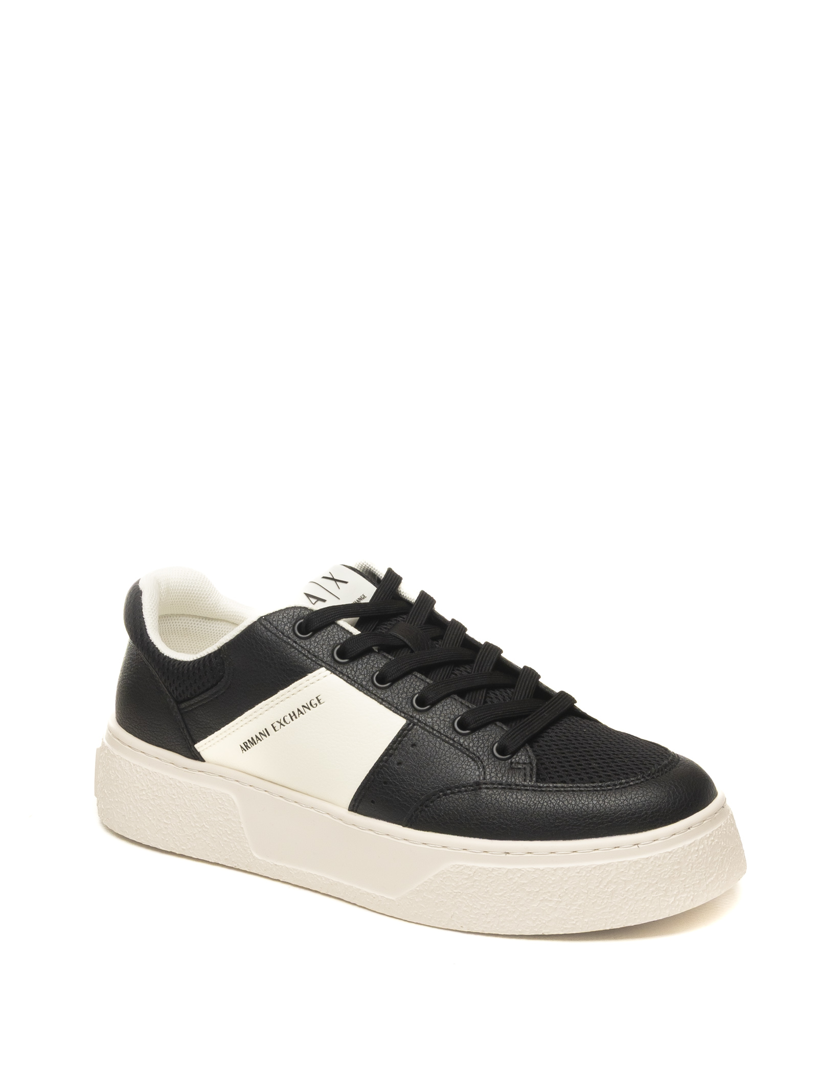 Armani Exchange sneaker in black/white, featuring a low-top silhouette with a contemporary urban profile, compact structure and defined lines.