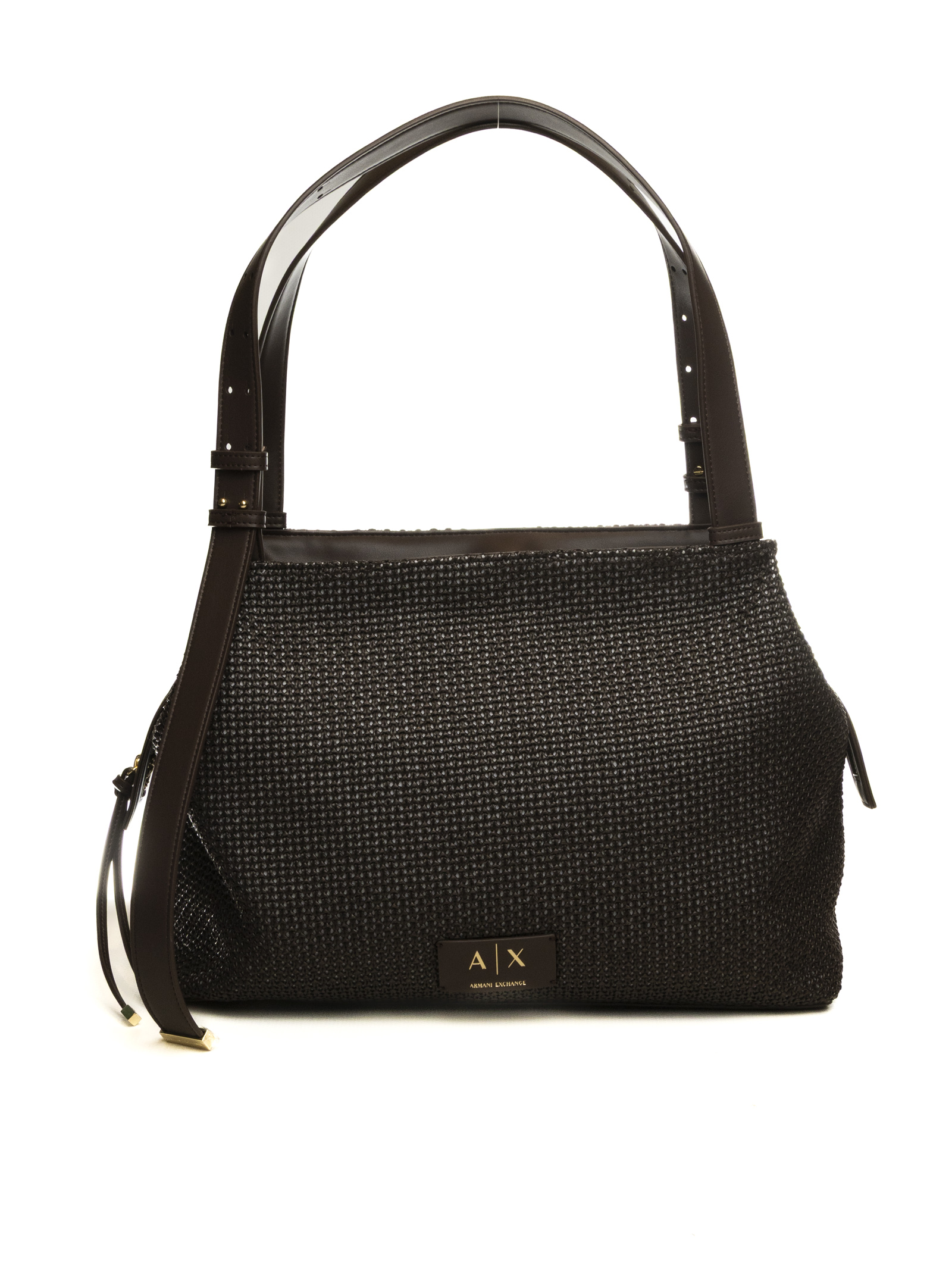 This Armani Exchange shoulder bag embodies understated, textured luxury, perfect for those seeking a distinctive everyday accessory. The design is defined by a fine, tightly woven weave that covers the entire body of the bag, creating a deep and sophisticated three-dimensional texture.