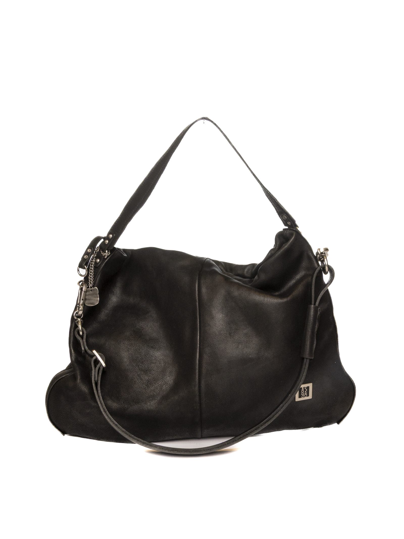 This AS98 hobo bag is crafted from premium black leather, soft and luminous to the touch.