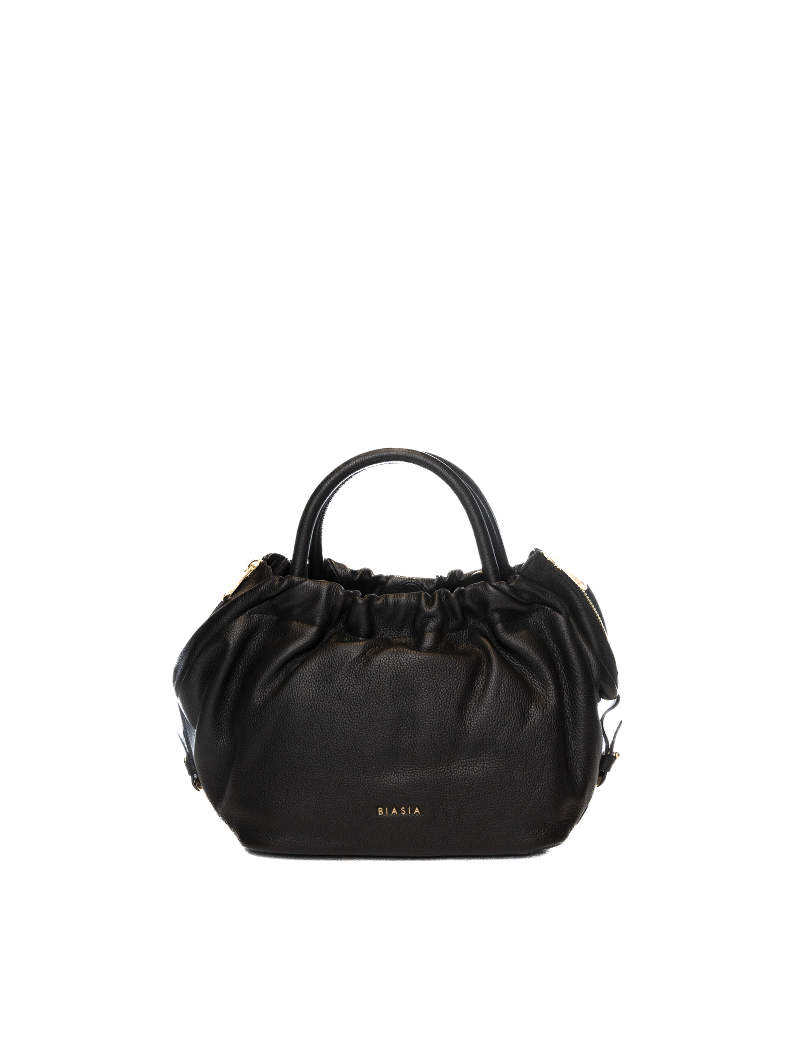 This gathered-effect faux leather handbag is a sophisticated detail that adds personality to every everyday look.