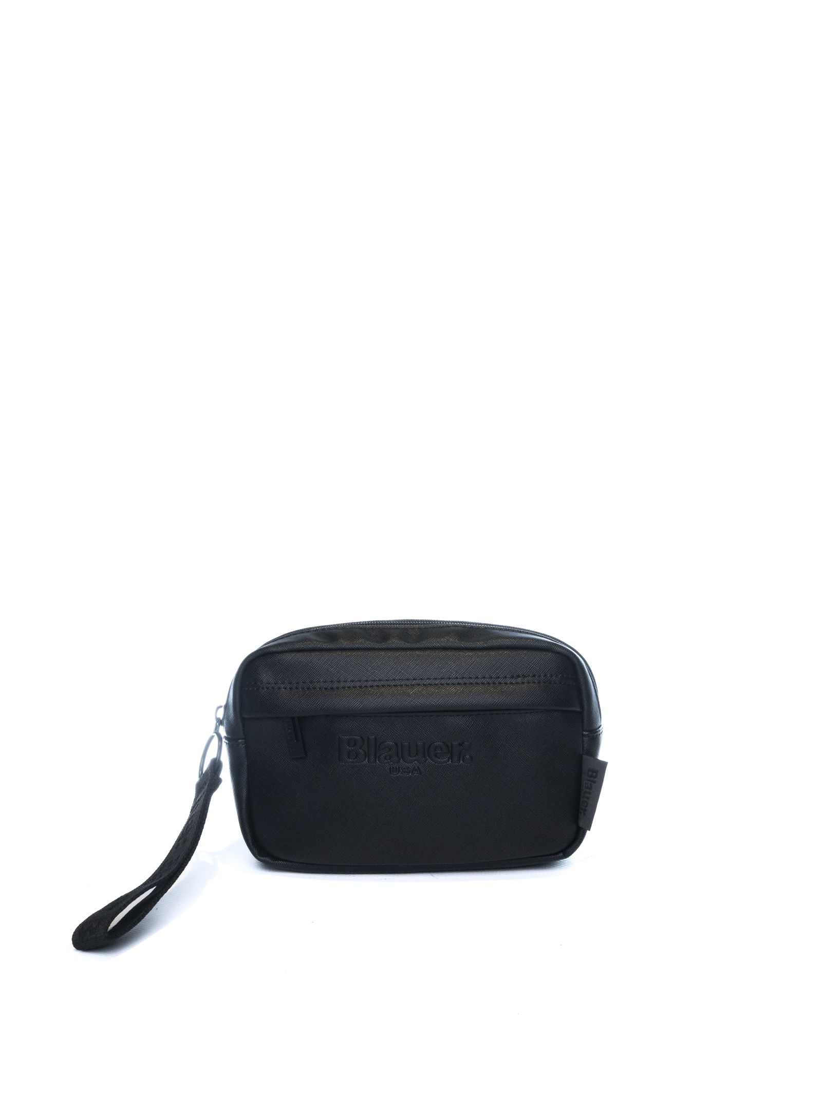 Made of synthetic leather with a saffiano texture, it features the embossed Blauer logo on the front and a convenient top zip.