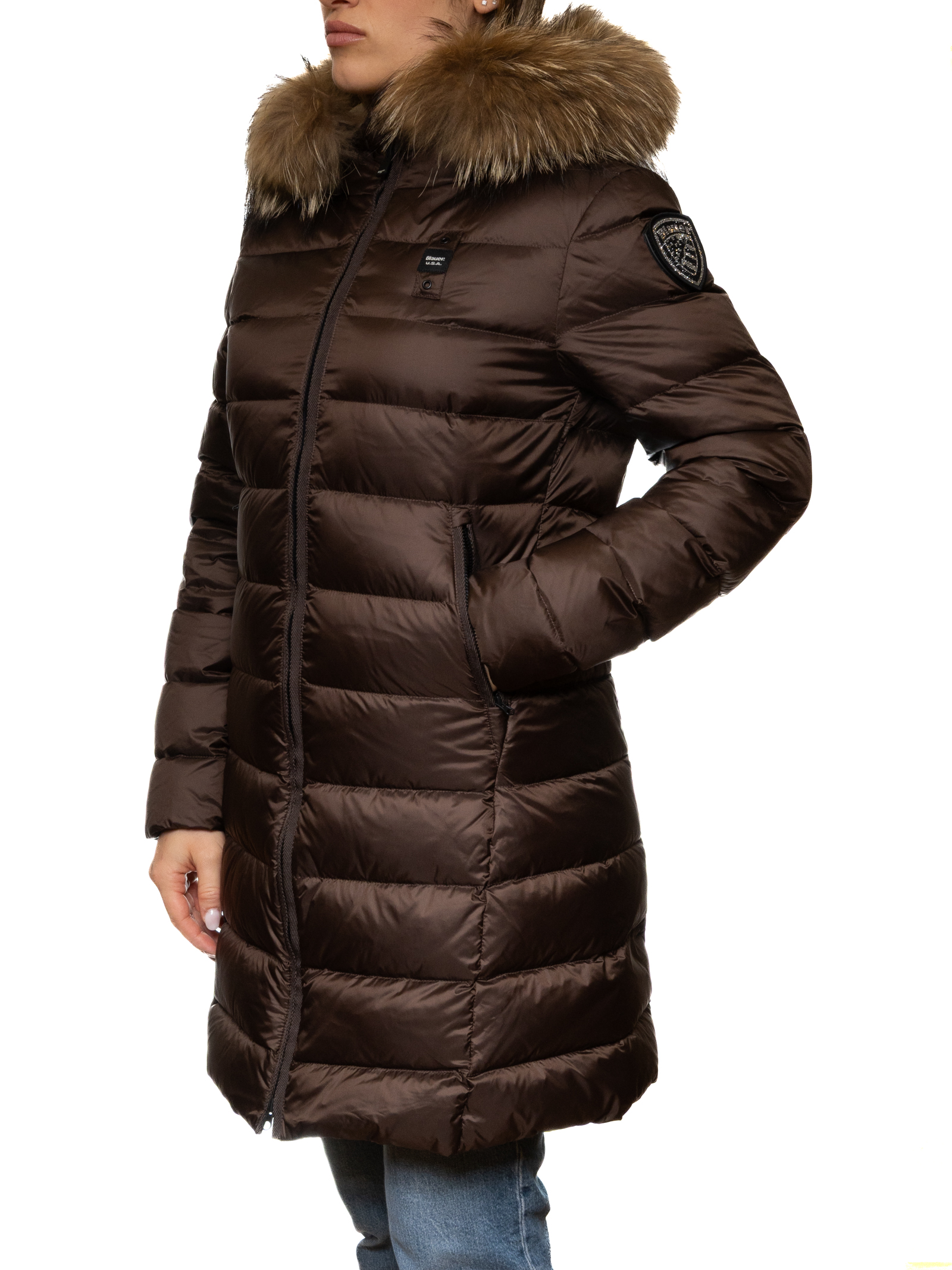 The Blauer Kristin down jacket is a long, sophisticated piece, designed for those who want to combine comfort, protection, and a contemporary feminine style.
