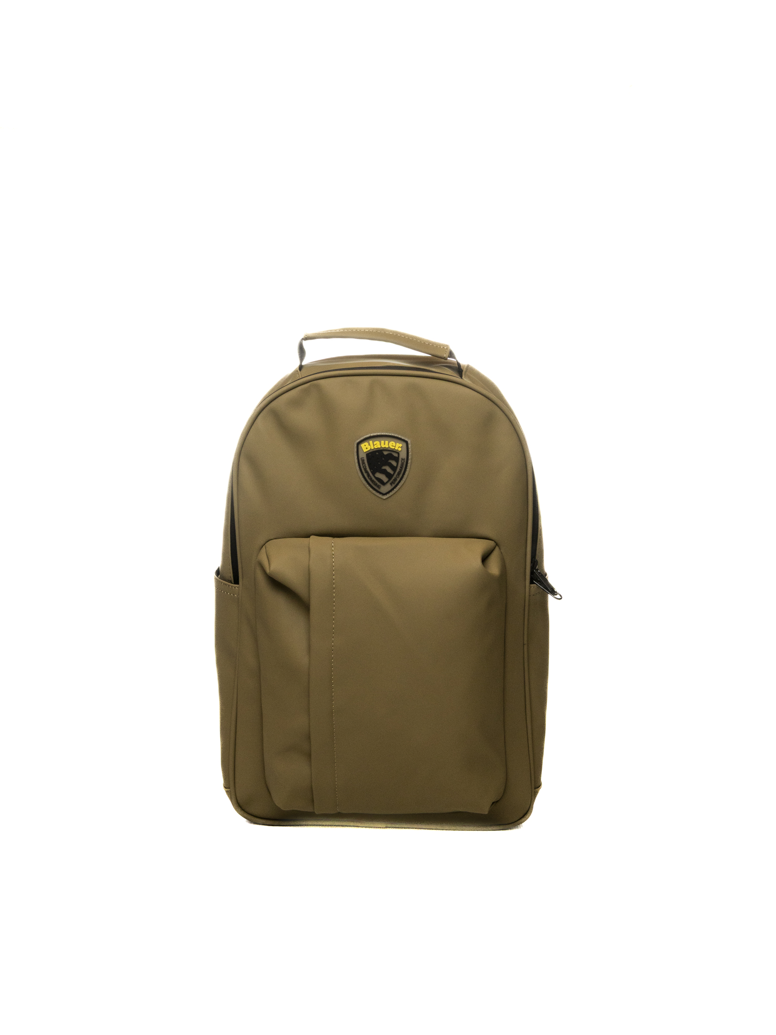 Crafted from high-quality rubberized fabric, this backpack is designed to withstand daily use and protect its contents thanks to the material's water-repellent properties. The clean silhouette is defined by a spacious main compartment and a practical front patch pocket, both with zip closures. The iconic Blauer logo shield is applied to the front, giving the accessory a distinctive and recognizable style.
