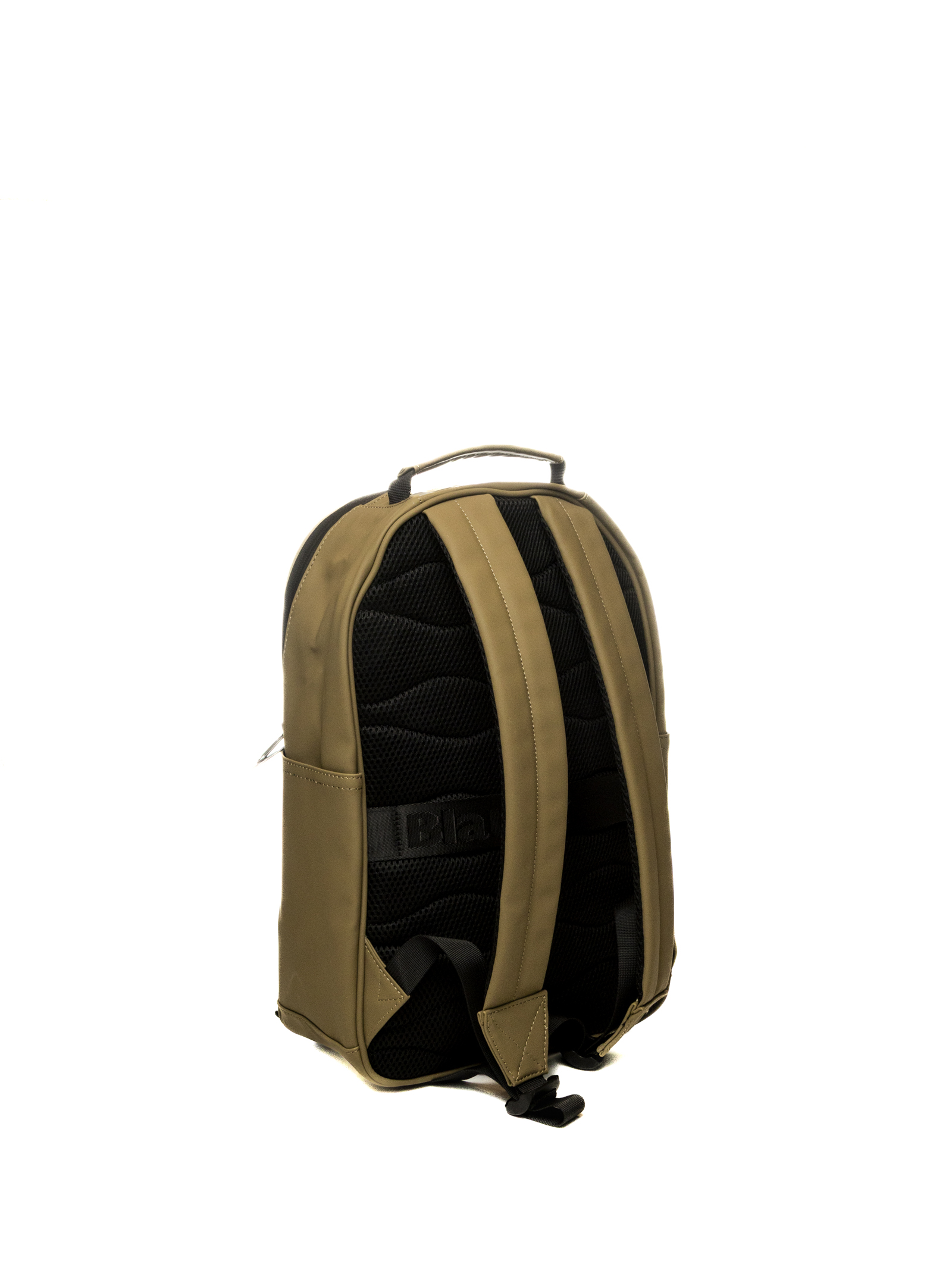 The backpack shown in the image is the Rubber Backpack S6DAHL01 by Blauer, an accessory with a minimalist and functional design, characterized by an olive green hue that highlights its urban-military inspiration.