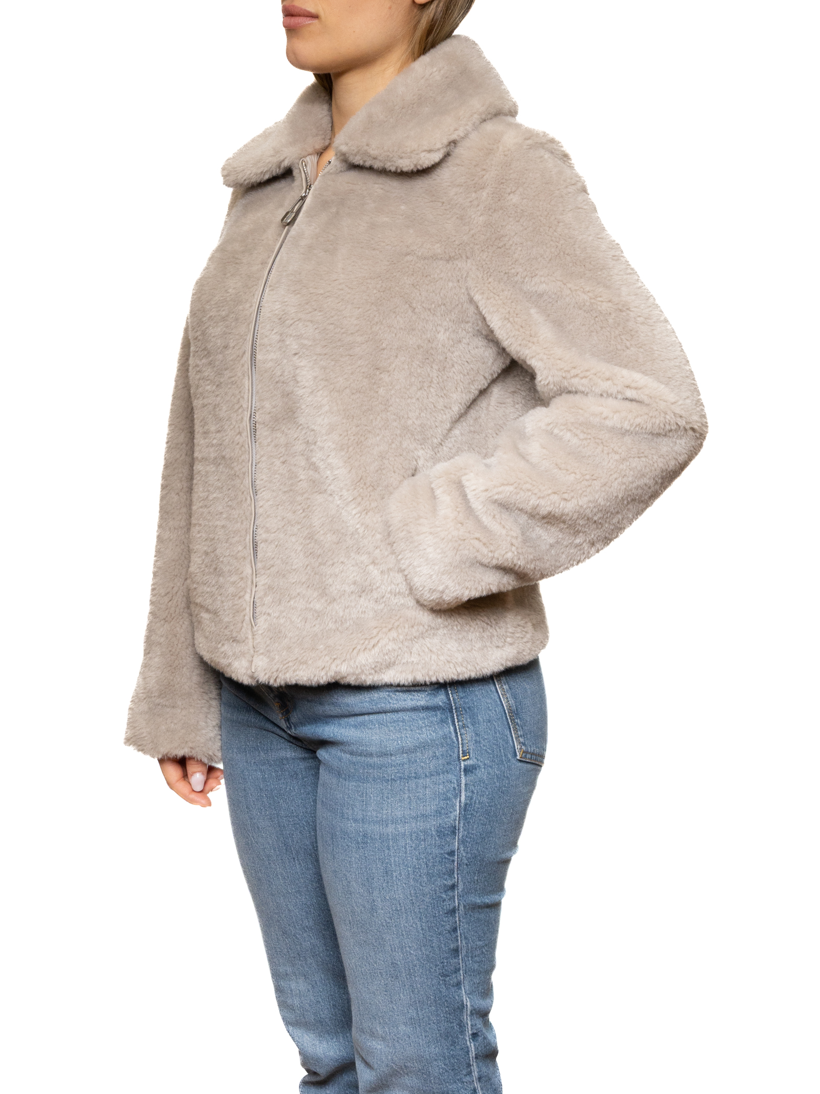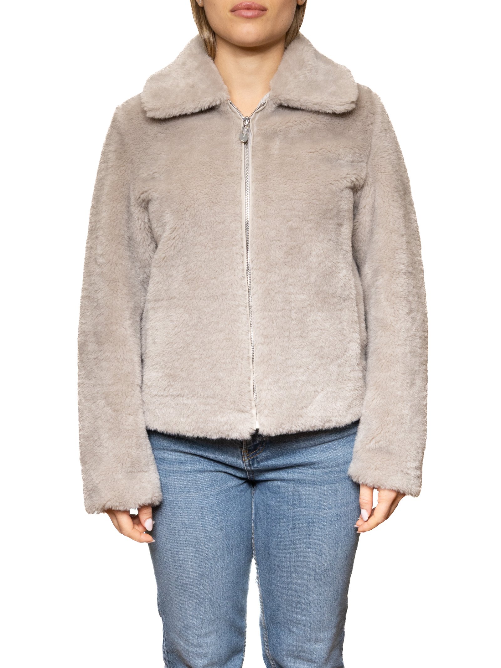 This women's faux fur jacket features a soft and refined design, ideal for facing the cold season with elegance and comfort. Crafted from an extremely soft fur-effect fabric, it offers a pleasantly enveloping sensation and excellent thermal insulation without being heavy. The clean, linear cut makes this garment versatile and suitable for both casual and sophisticated looks.