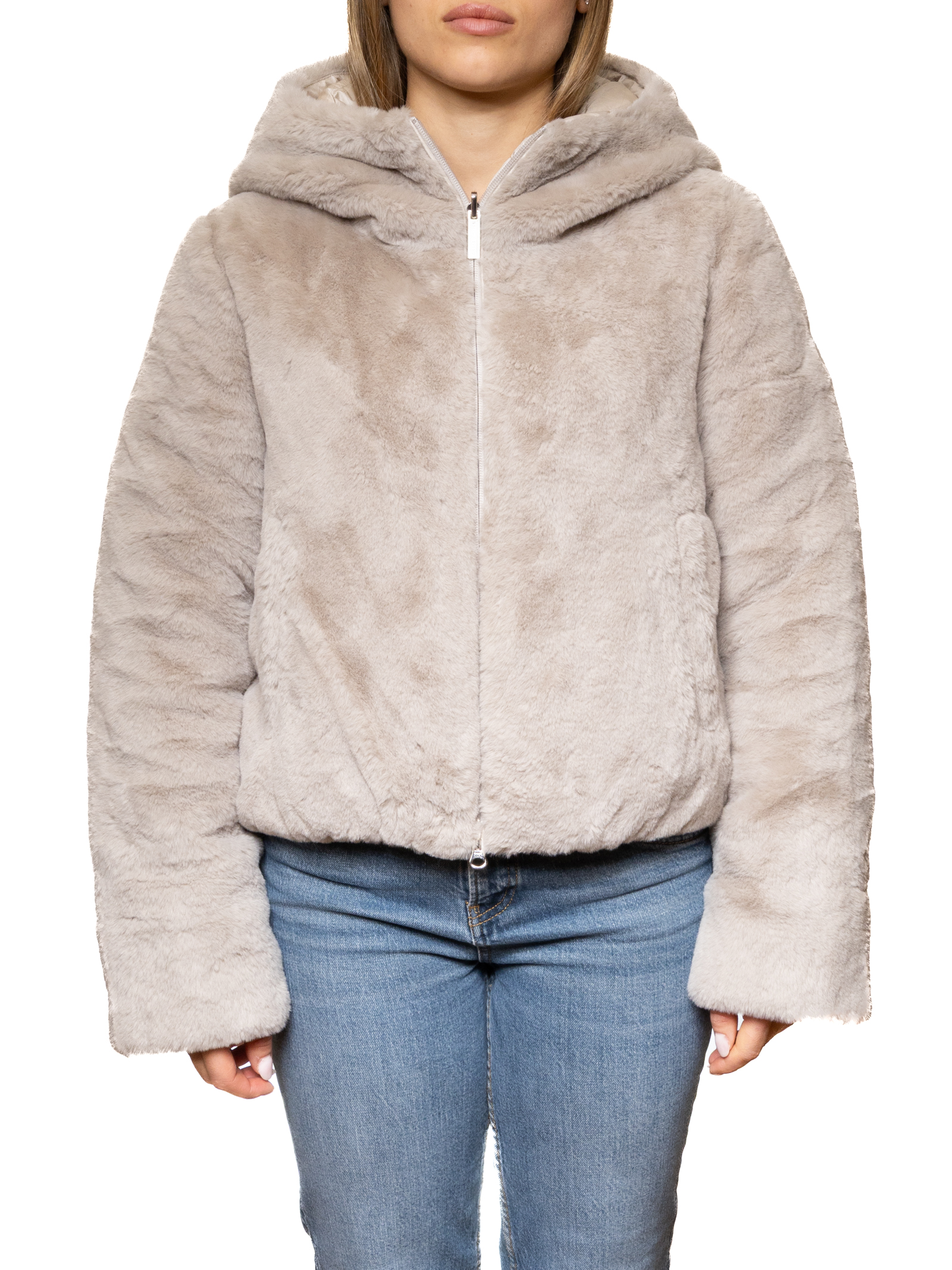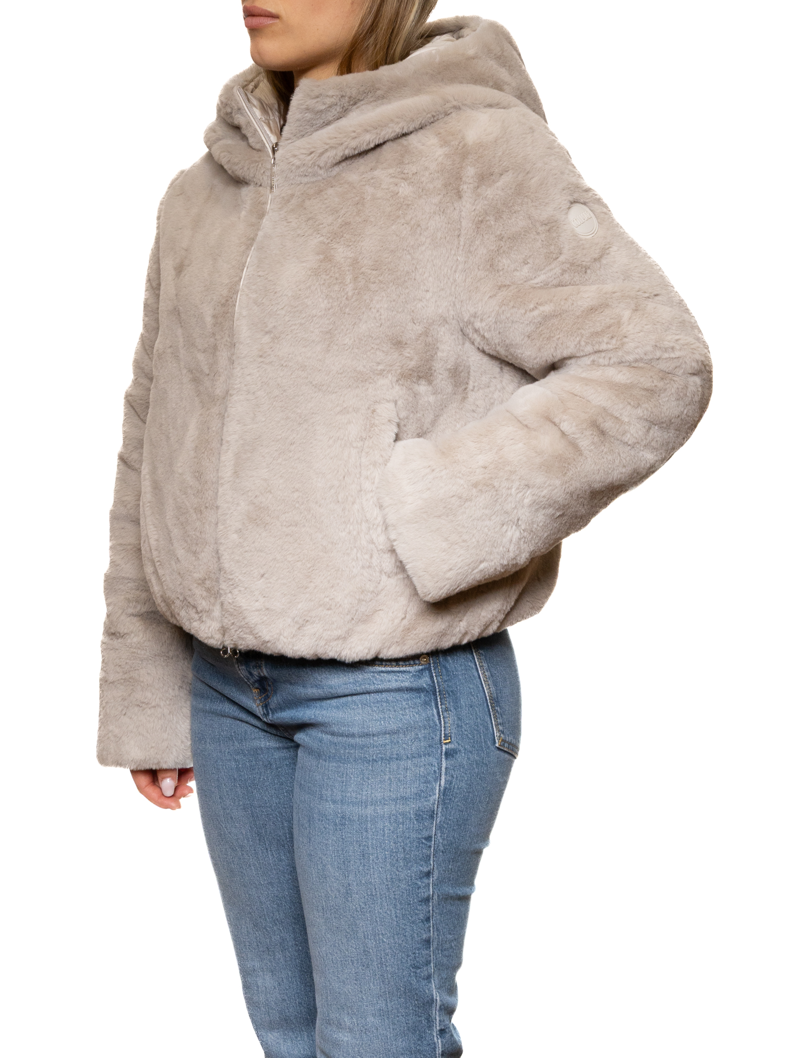 This women's faux fur jacket features a modern, enveloping design, designed for maximum comfort during the cold season. Crafted from a soft, smooth fabric, it provides a pleasant feeling of warmth without being heavy. The fur-effect surface gives the piece an elegant and contemporary look, ideal for completing casual and urban outfits.