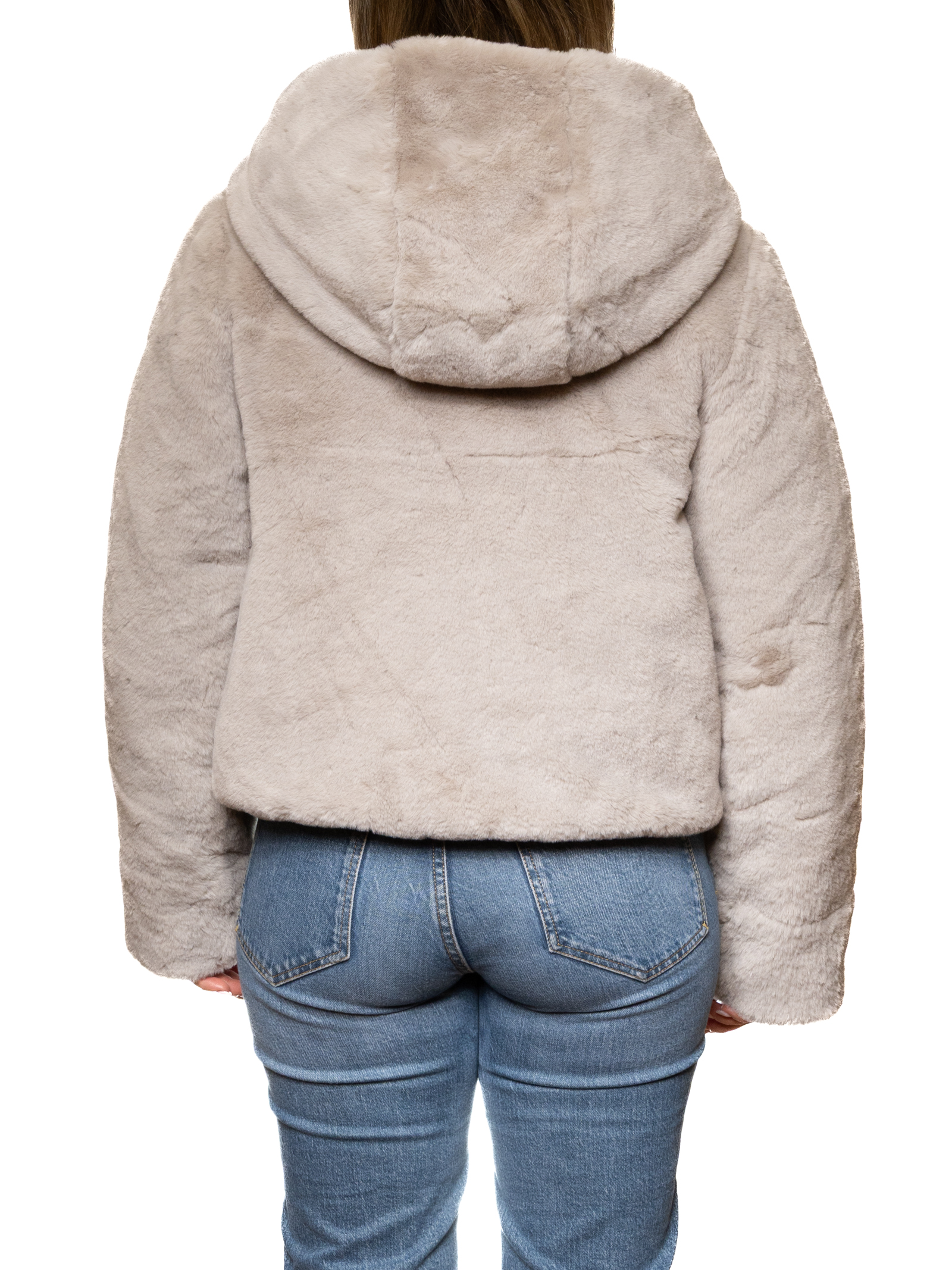 The front zip closure ensures practicality for everyday wear, while the integrated hood adds an extra layer of protection on colder or windier days. The comfortable fit and soft sleeves allow for freedom of movement, making this jacket perfect for those seeking style and comfort in one garment.