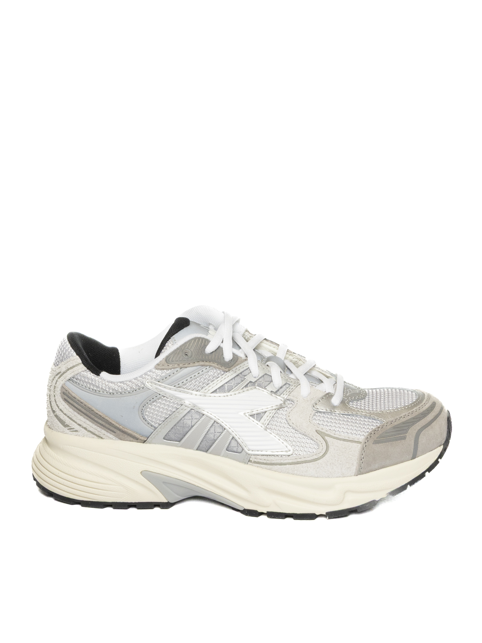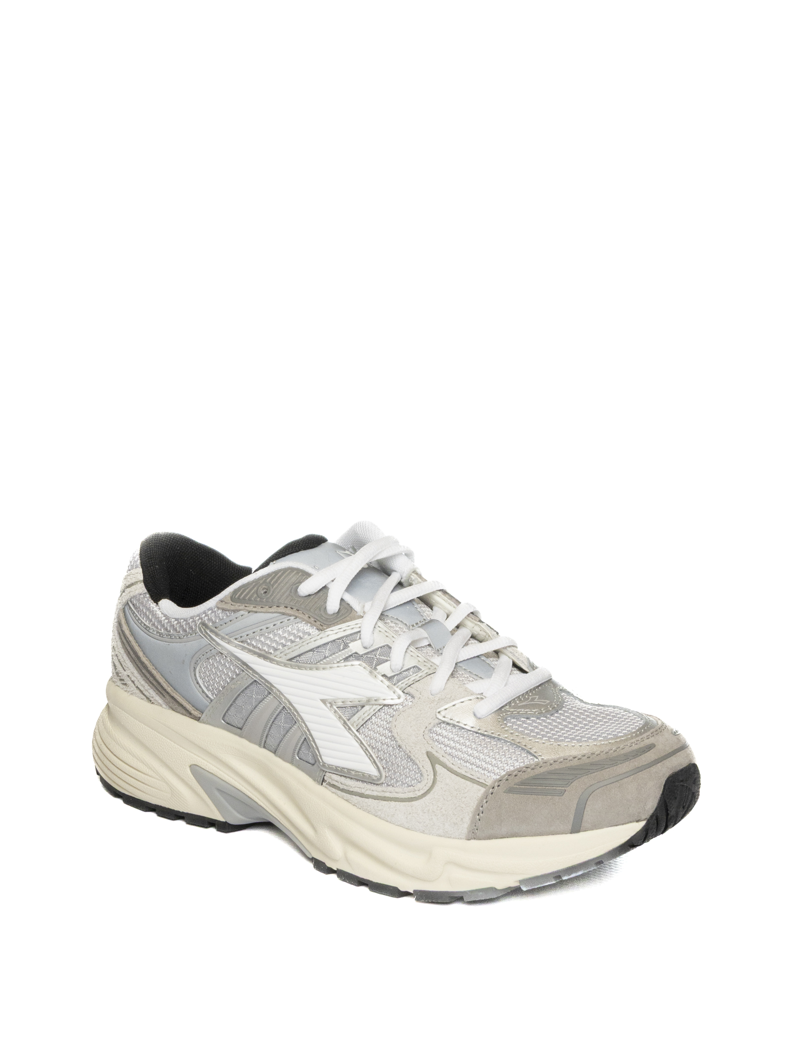 Suede and mesh sneaker. Lace-up closure. Logo lettering on the tongue. Logo on the back. Laminated leather inserts. Rubber sole.