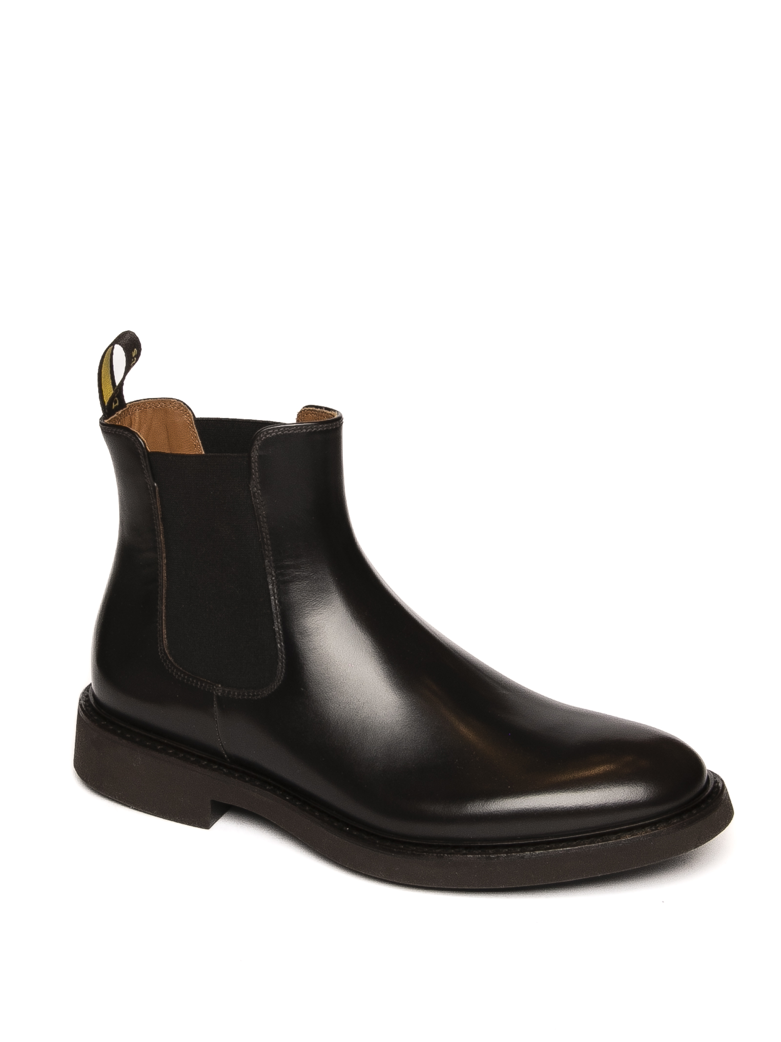 The ebony leather Beatles from DOUCAL'S is a refined reinterpretation of the classic English ankle boot. Crafted from high-quality smooth leather, they feature elastic sides and a logo-embellished back pull tab for an easy and comfortable fit. The leather lining and logo-embellished insole ensure softness and breathability, while the non-slip rubber sole guarantees grip and durability.