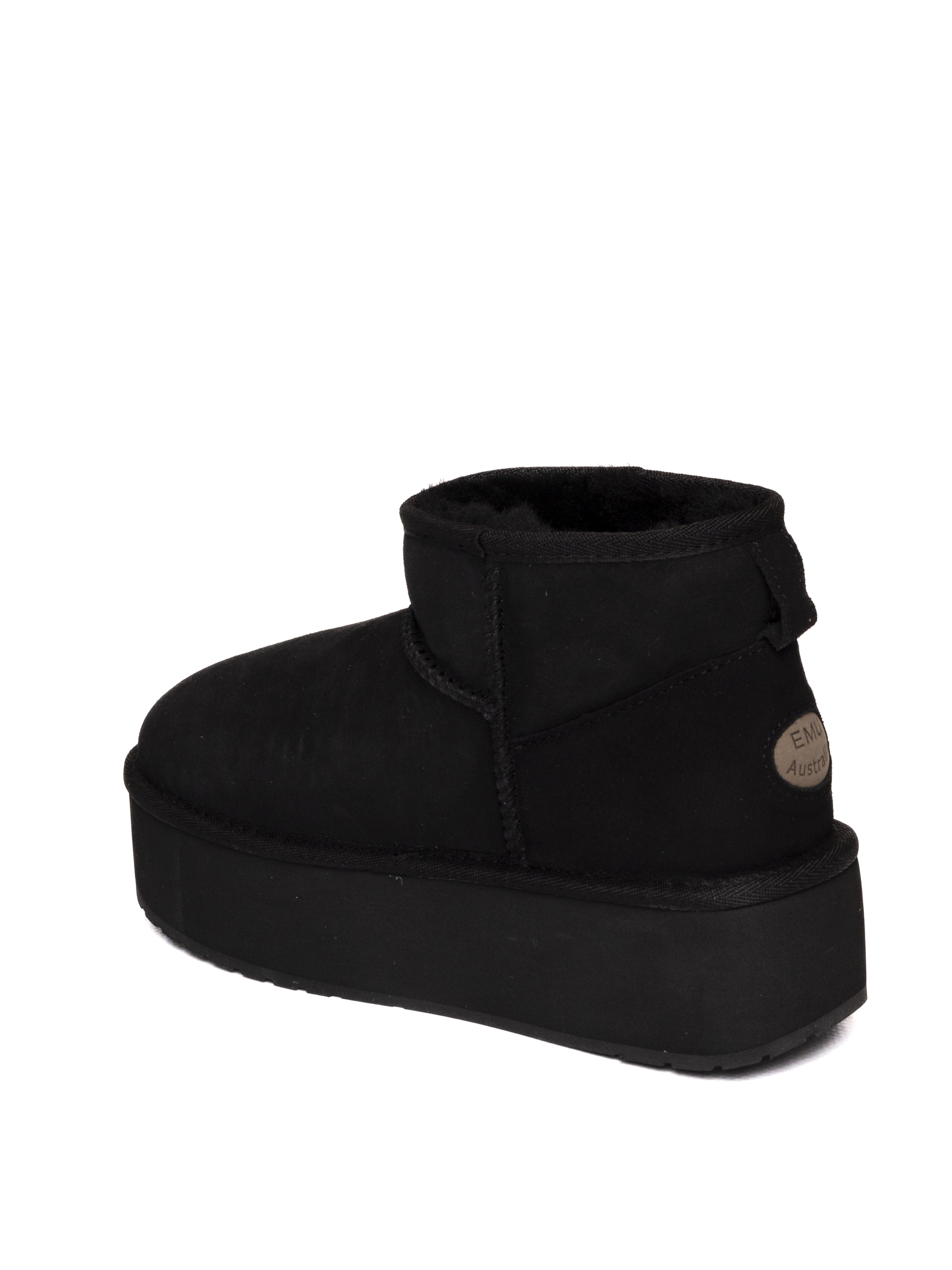 Sheepskin ankle boot. Rear tie rod. Water and stain resistant. Platform rubber sole. Rubber height 50mm.