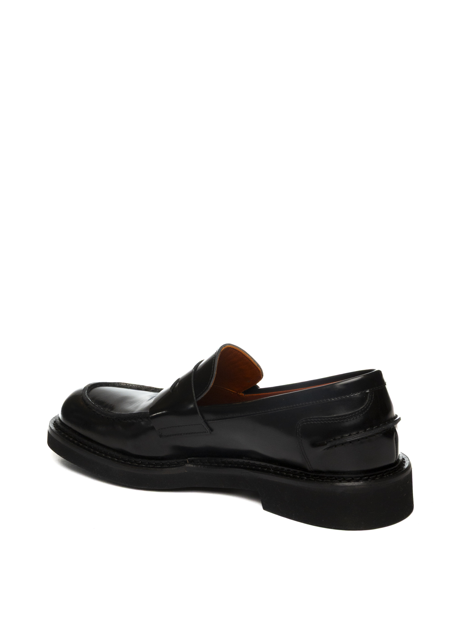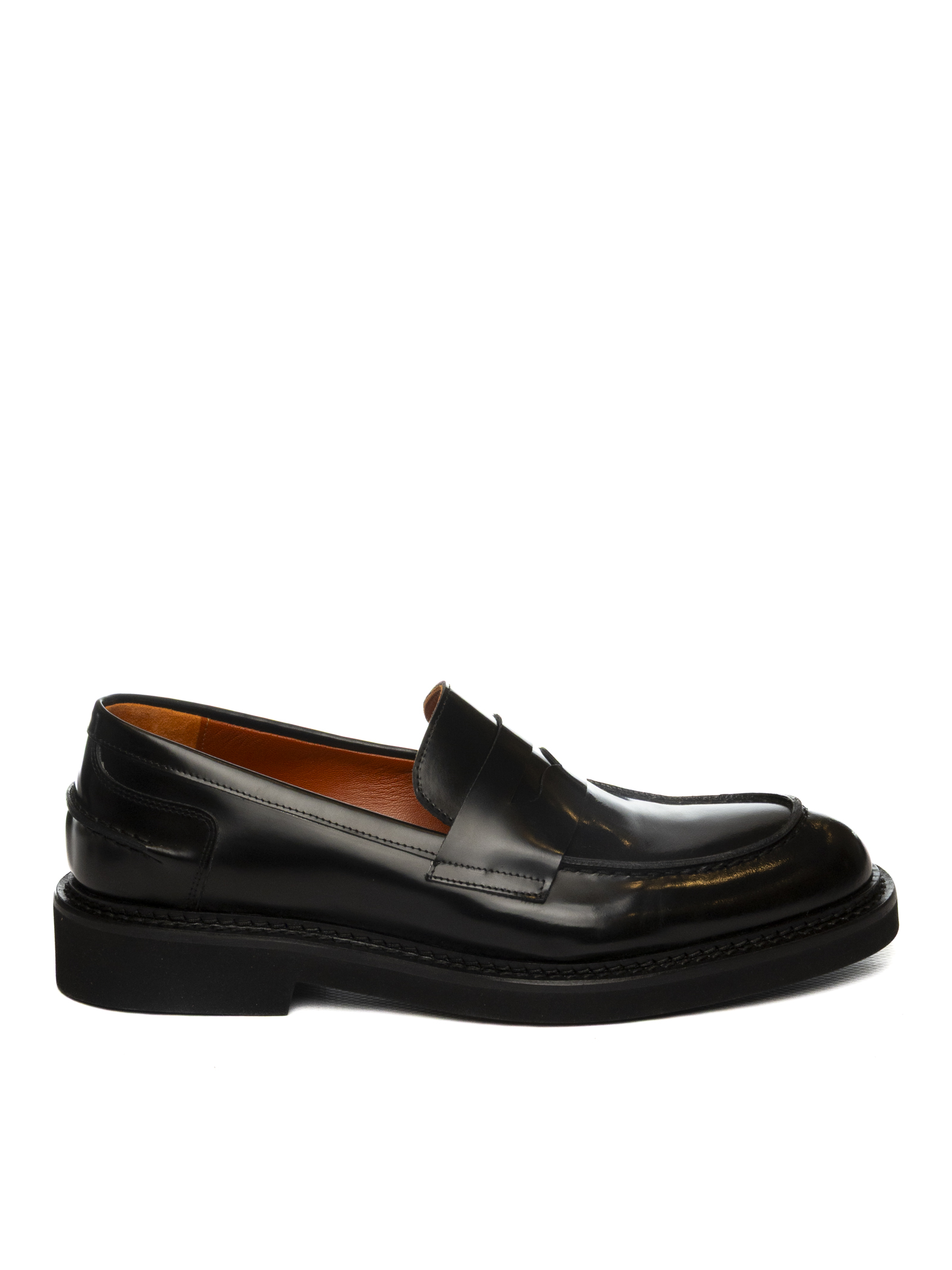 Classic black brushed leather loafer, a timeless expression of Italian craftsmanship and elegance.