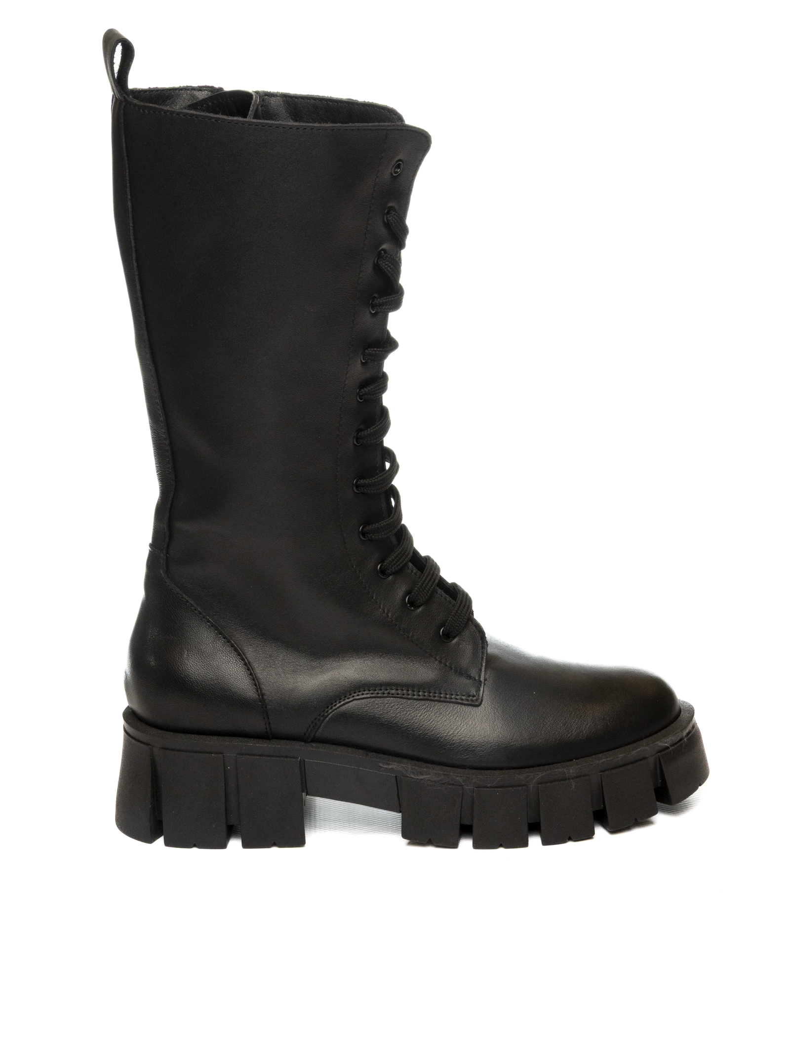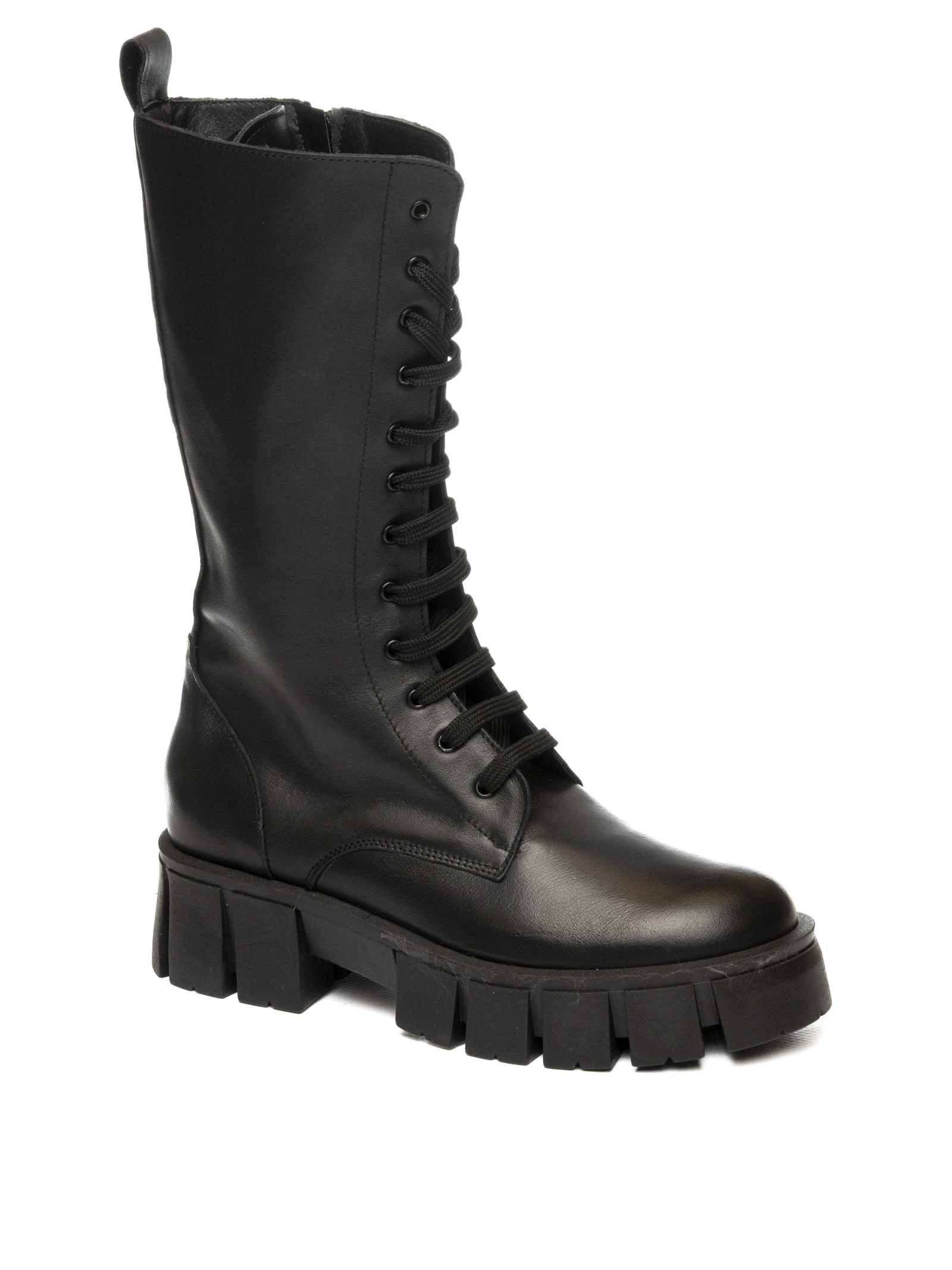 The front lace-up fastening and side zip ensure a practical and adjustable fit, while the chunky platform sole adds a bold, fashion-forward touch.
