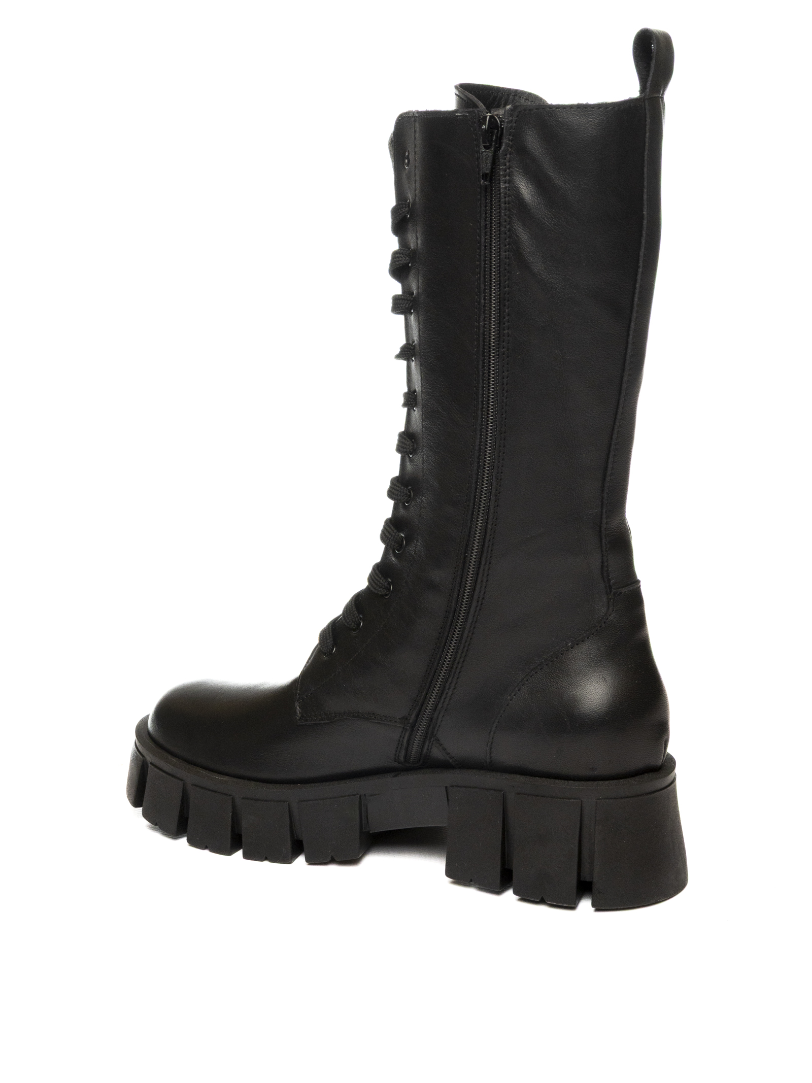 This high black leather combat boot perfectly reflects the brands modern attitude, blending comfort, functionality and urban style.