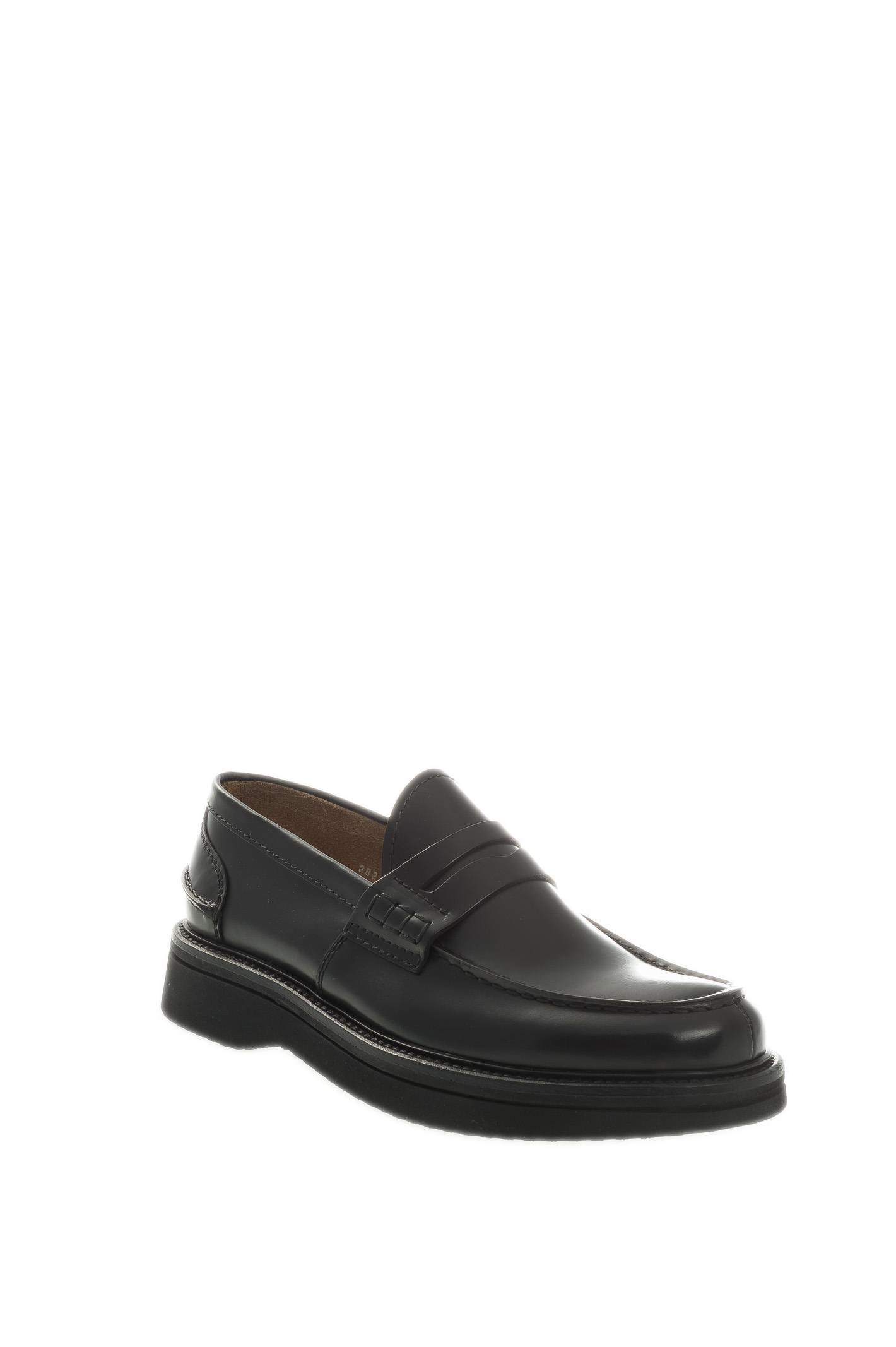 Polished black smooth leather loafer, an expression of authentic craftsmanship and refined style signed Green George.