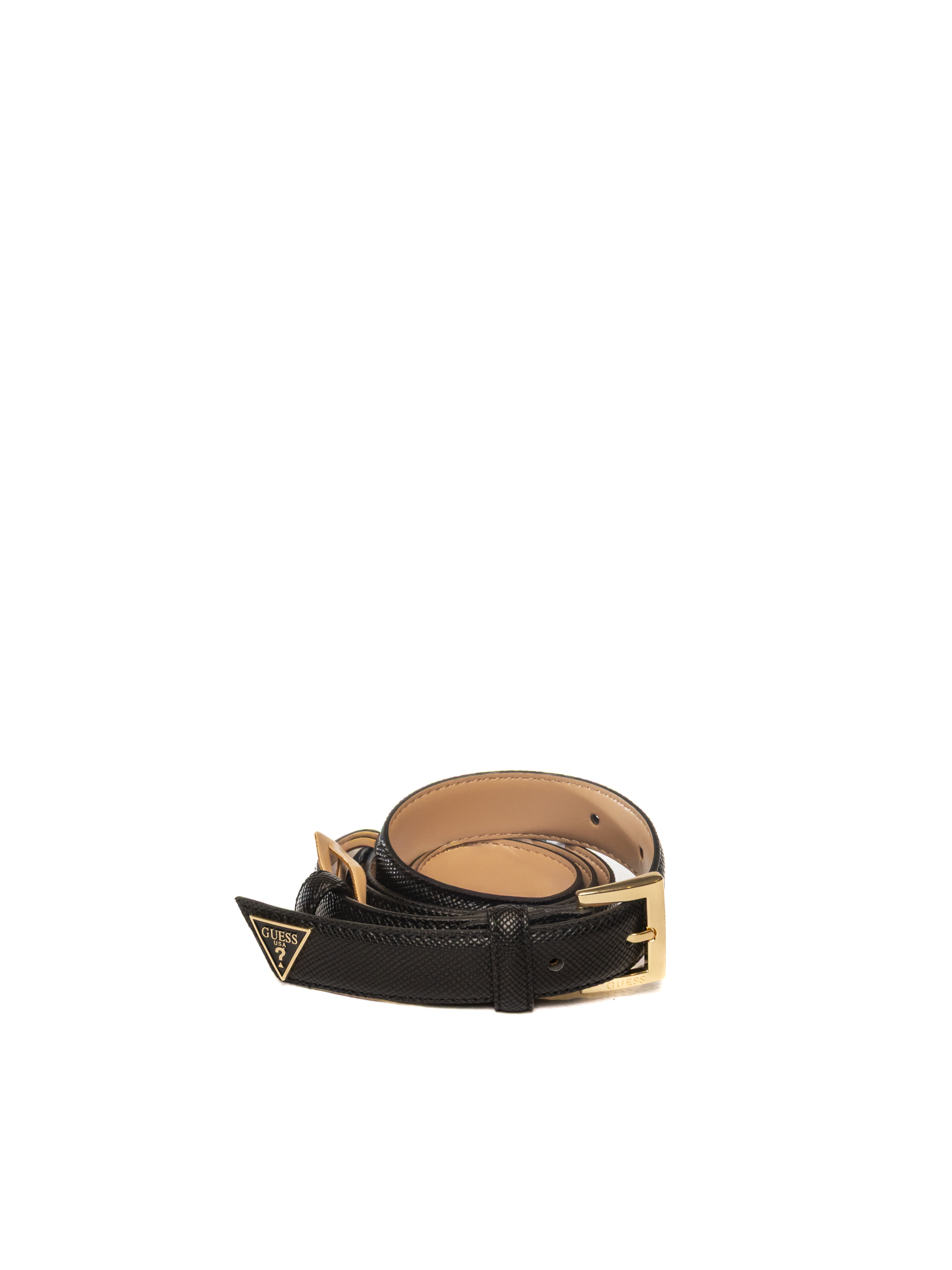 The Guess Bolena saffiano belt is a sophisticated accessory that combines classic design and modern details.