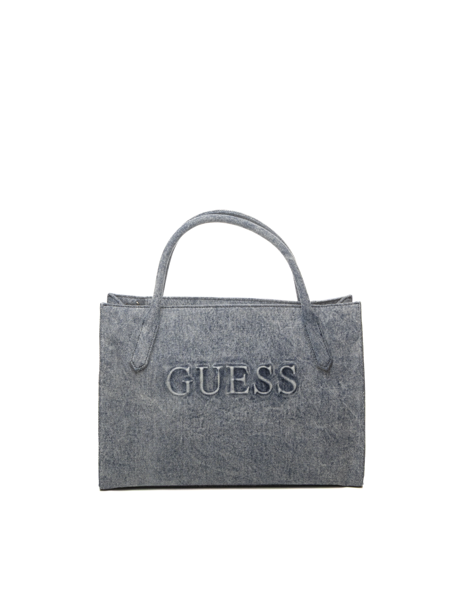 This shopper bag is the Jodi Shopper (or Jodi Tote) by GUESS, a casual-chic accessory featuring an original denim patchwork design.