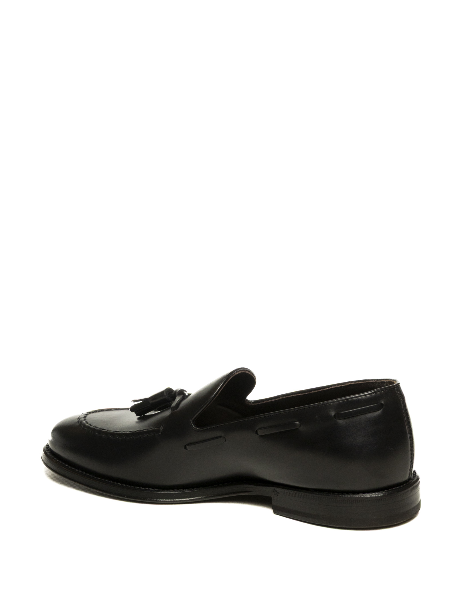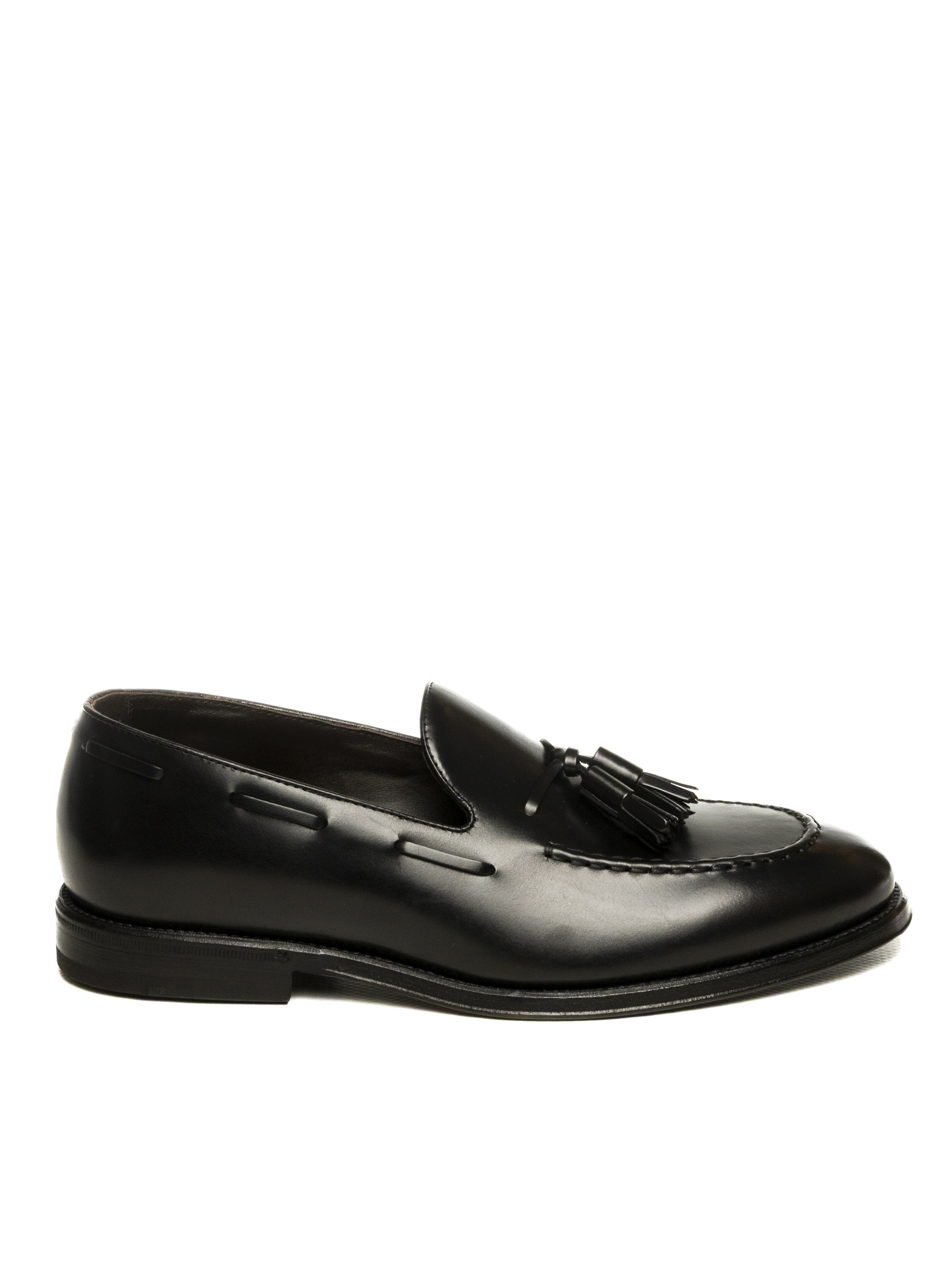 The Henderson 'Tassel Loafer' model 72407 is a testament to Italian footwear craftsmanship combined with a timelessly elegant design. Crafted from premium black 'Calf' leather, this model stands out for its clean lines and meticulous attention to detail, such as the classic tassels and the perimeter lacing that define its sophisticated character. The artisanal construction ensures a comfortable fit and superior flexibility, while the sole profile maintains a sober and contemporary aesthetic. A versatile and classy shoe, ideal for enhancing formal outfits or elevating a refined casual look with a touch of sartorial distinction.