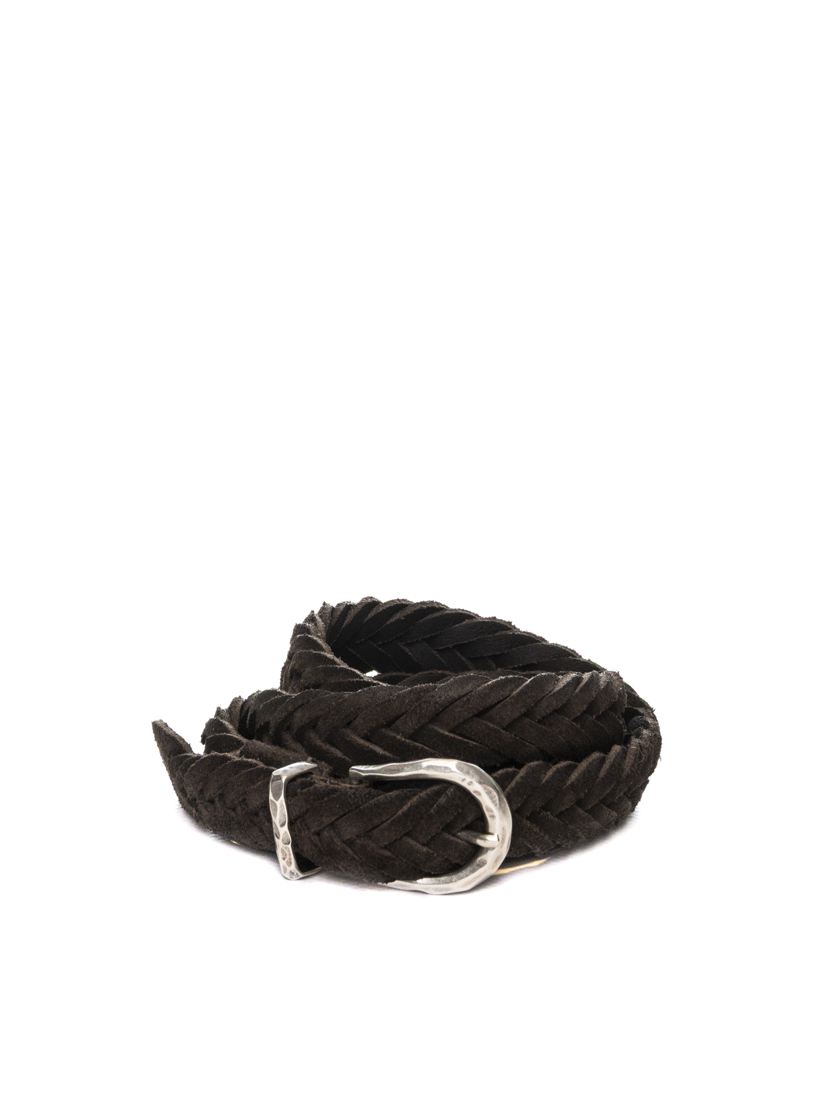 Woven leather belt. Adjustable. Silver hardware. Made in Italy