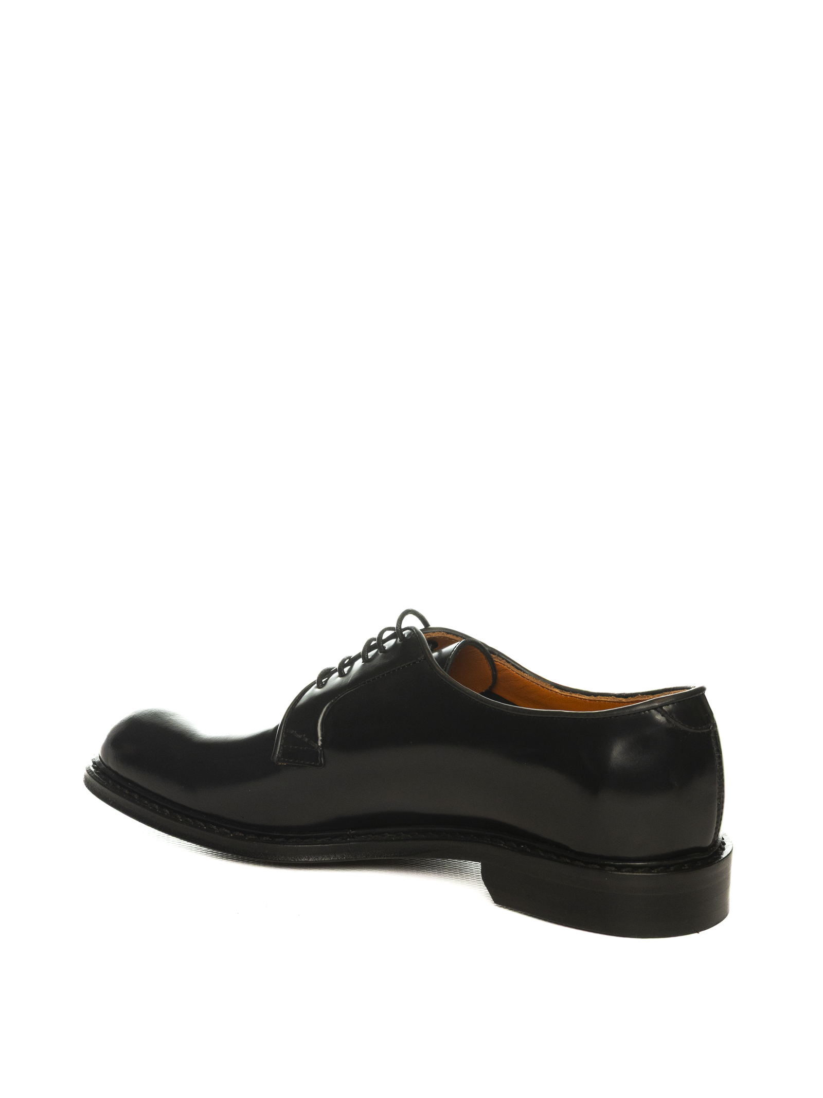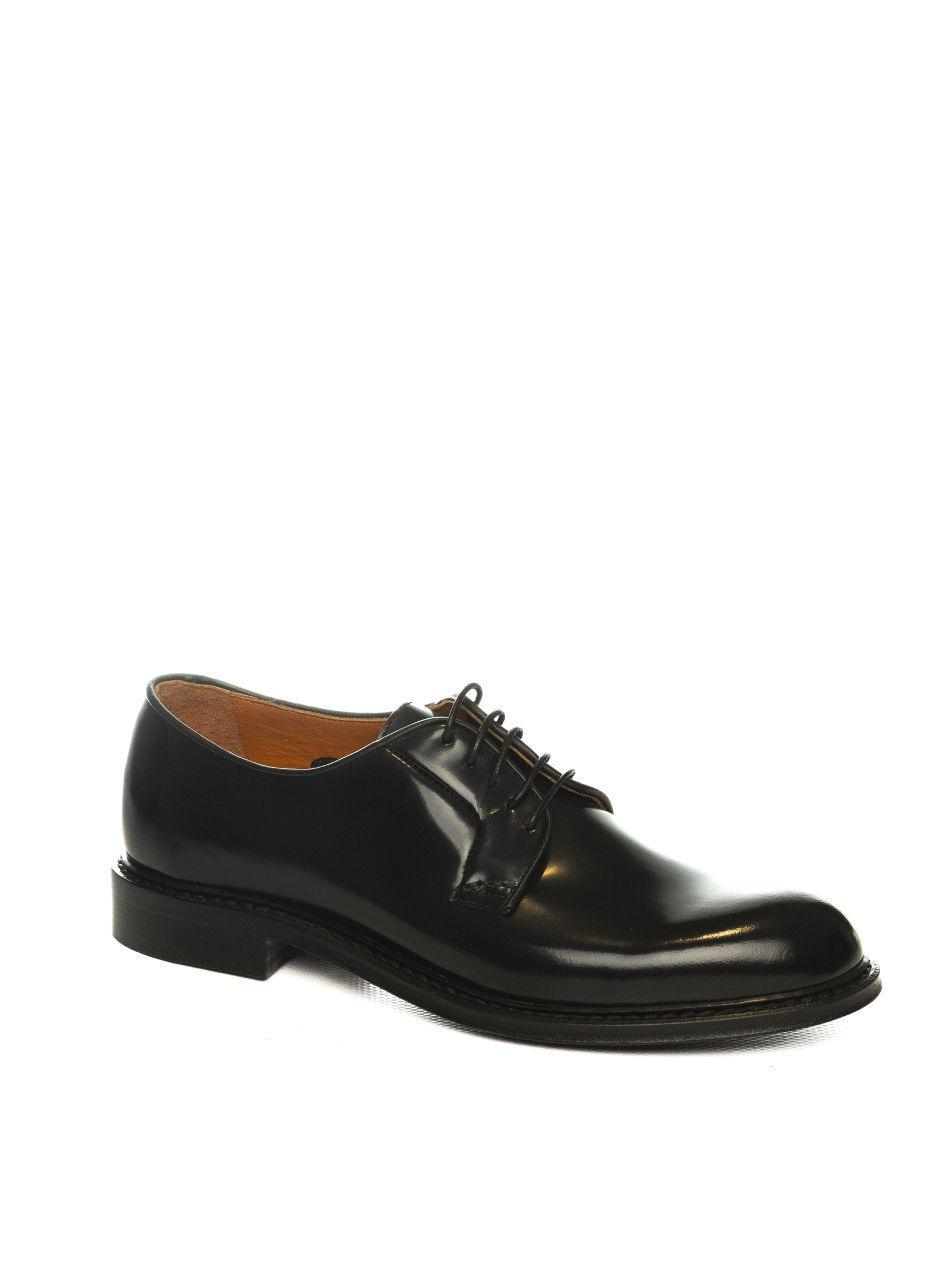 Brushed leather derby. Lace-up closure. Leather insole and lining. Leather sole. Made in Italy