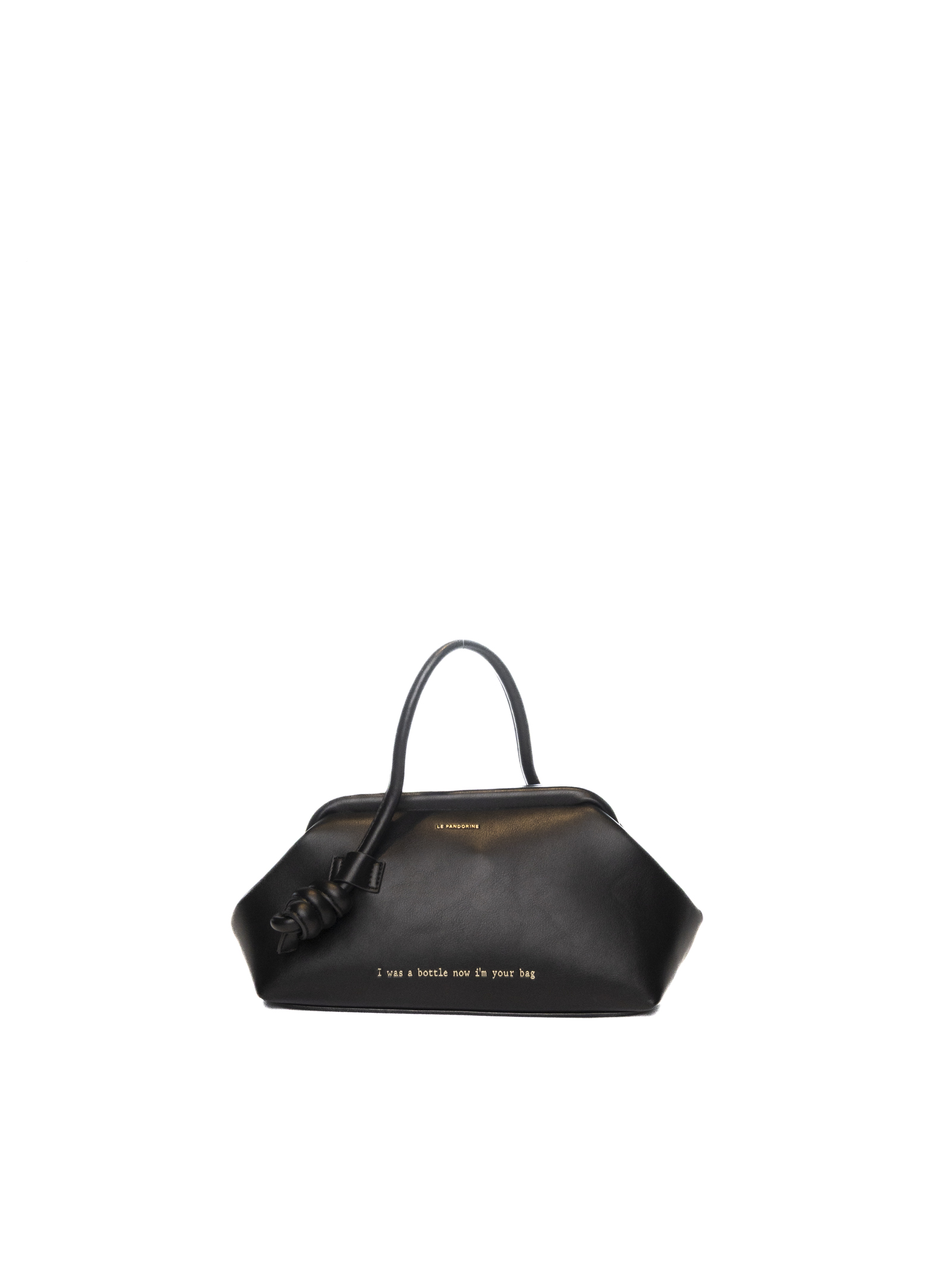 The black Le Pandorine "I WAS A BOTTLE" bag is the epitome of conscious and modern style.