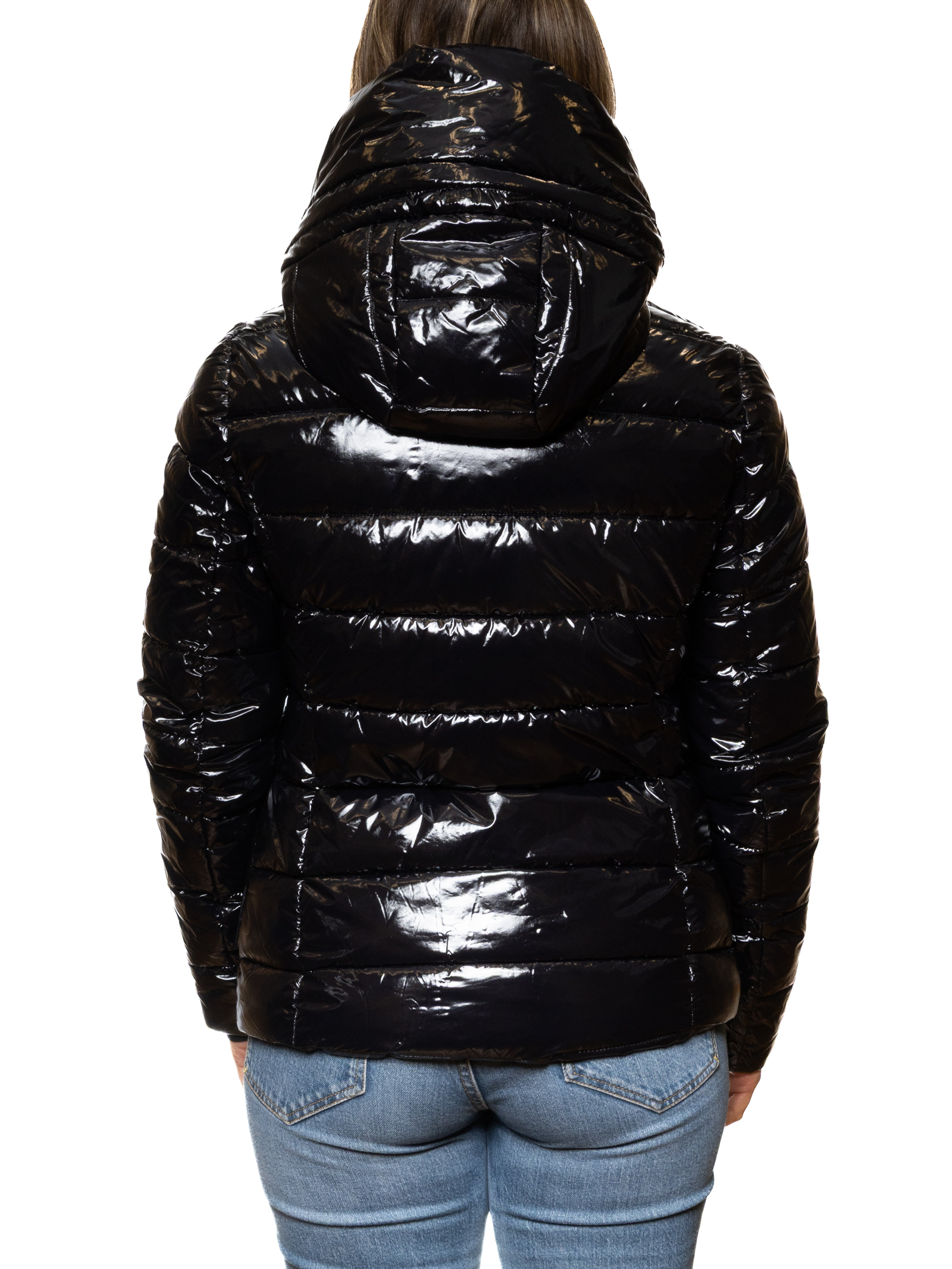 Crafted from shiny, vinyl-effect technical fabric, it offers a contemporary and sophisticated look, ideal for those who love to stand out with understated style.