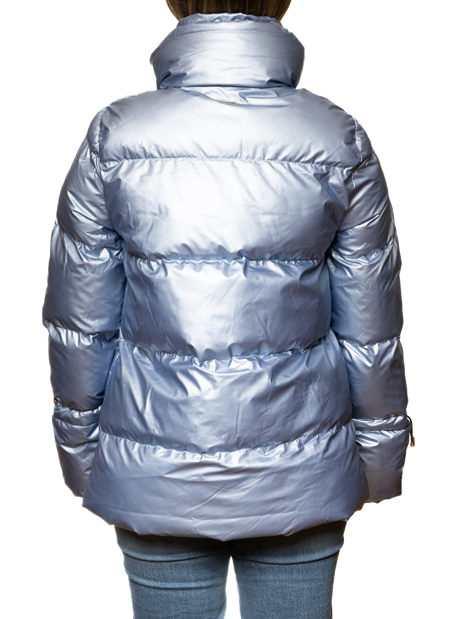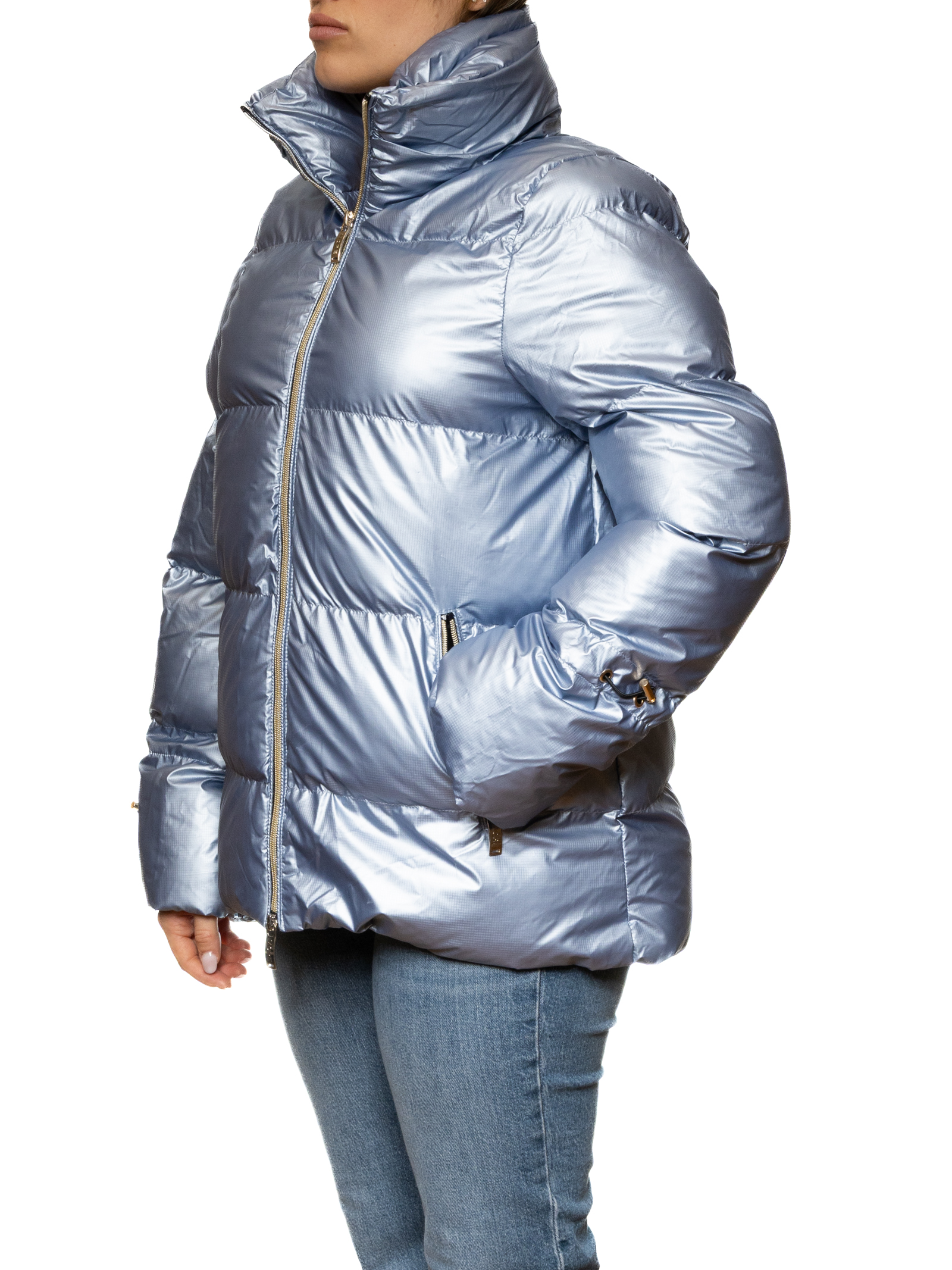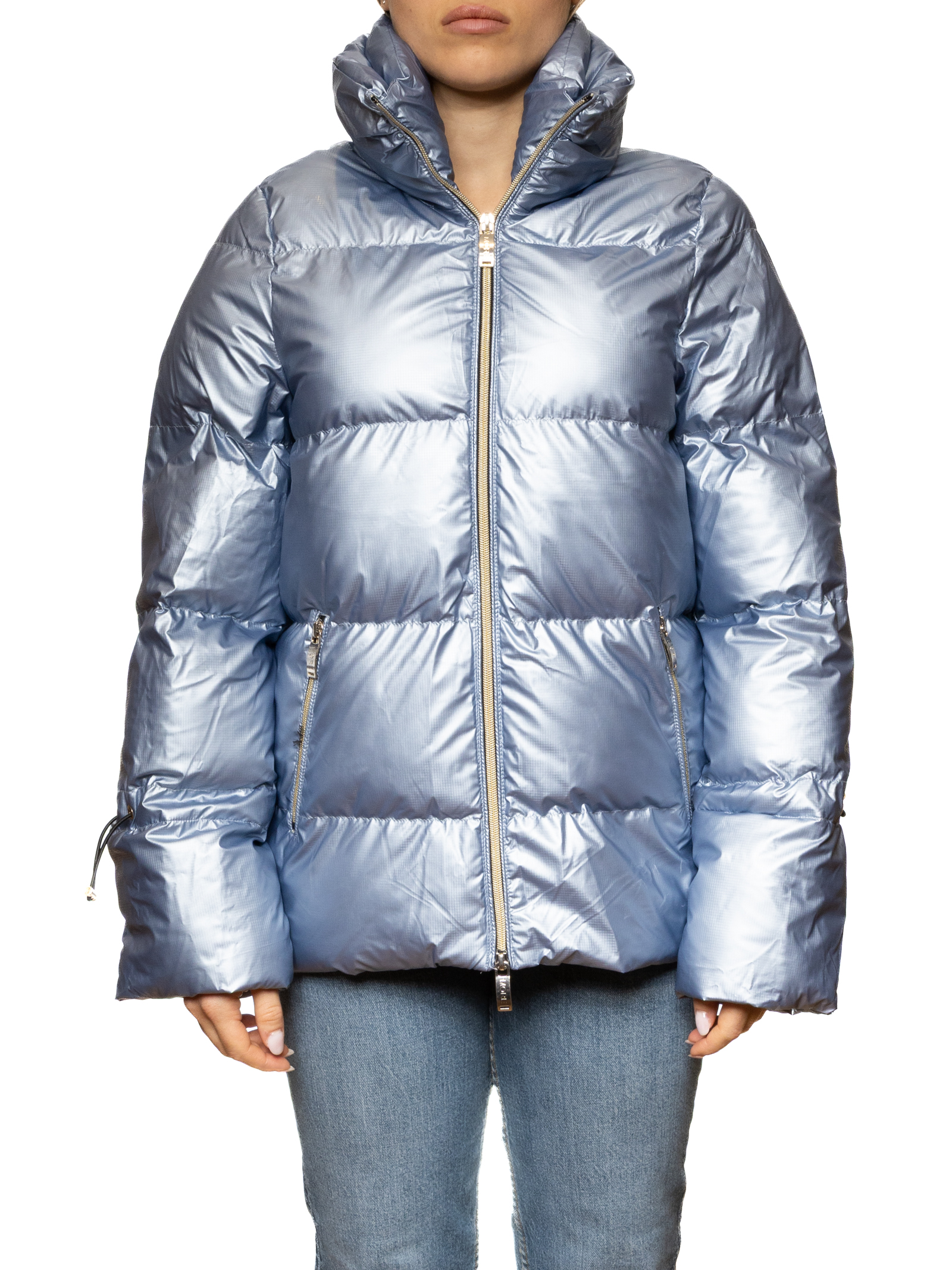 The MORE women's down jacket in light blue combines elegance, comfort, and functionality in a modern design.
