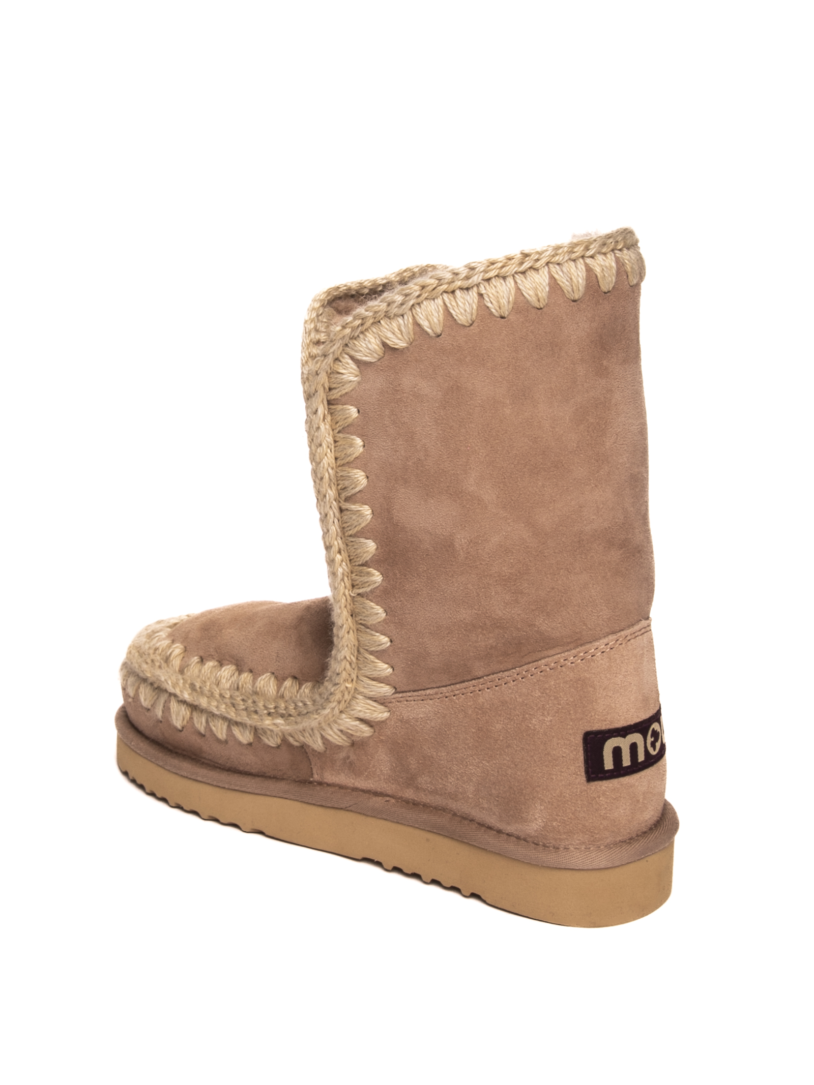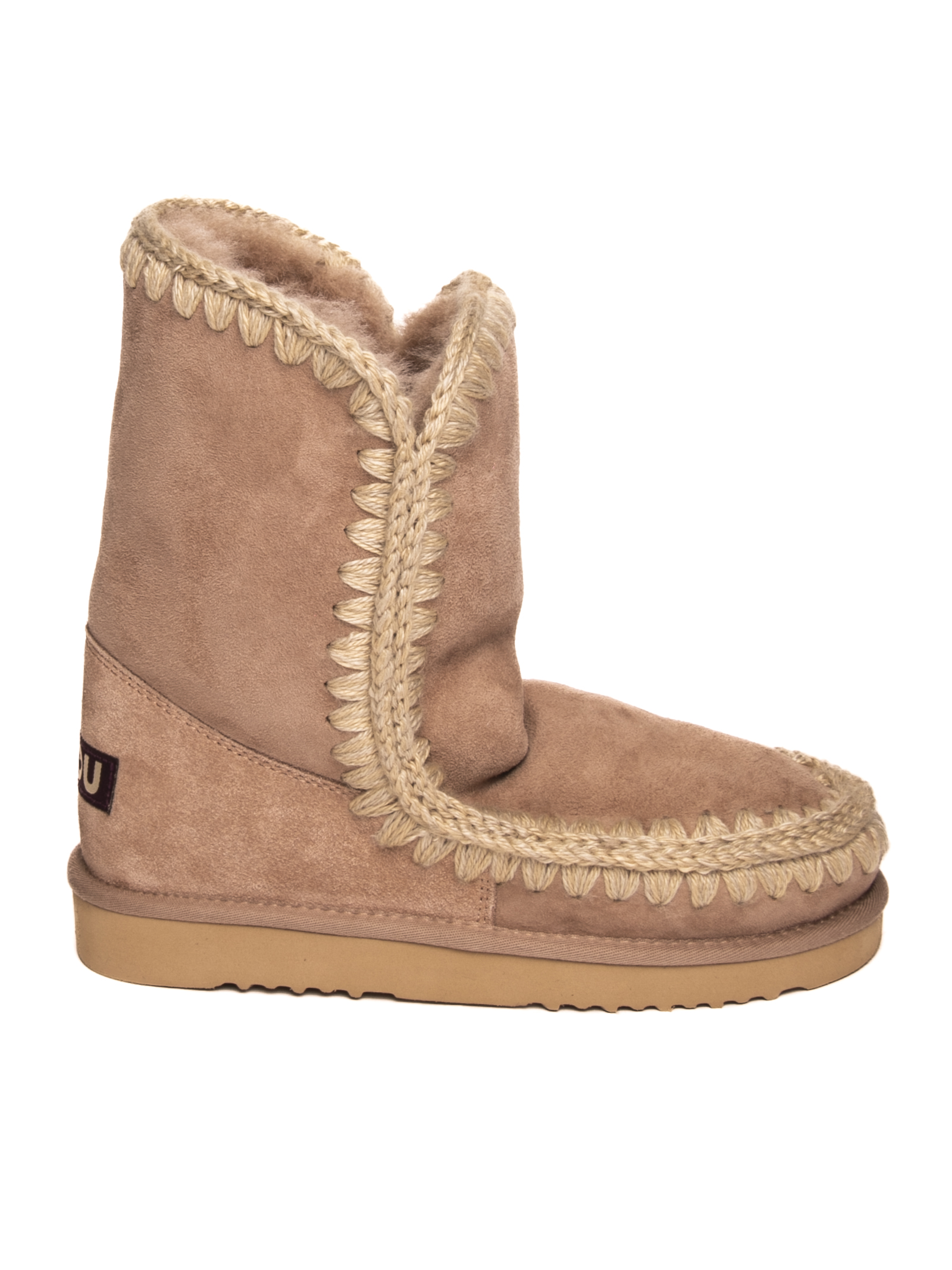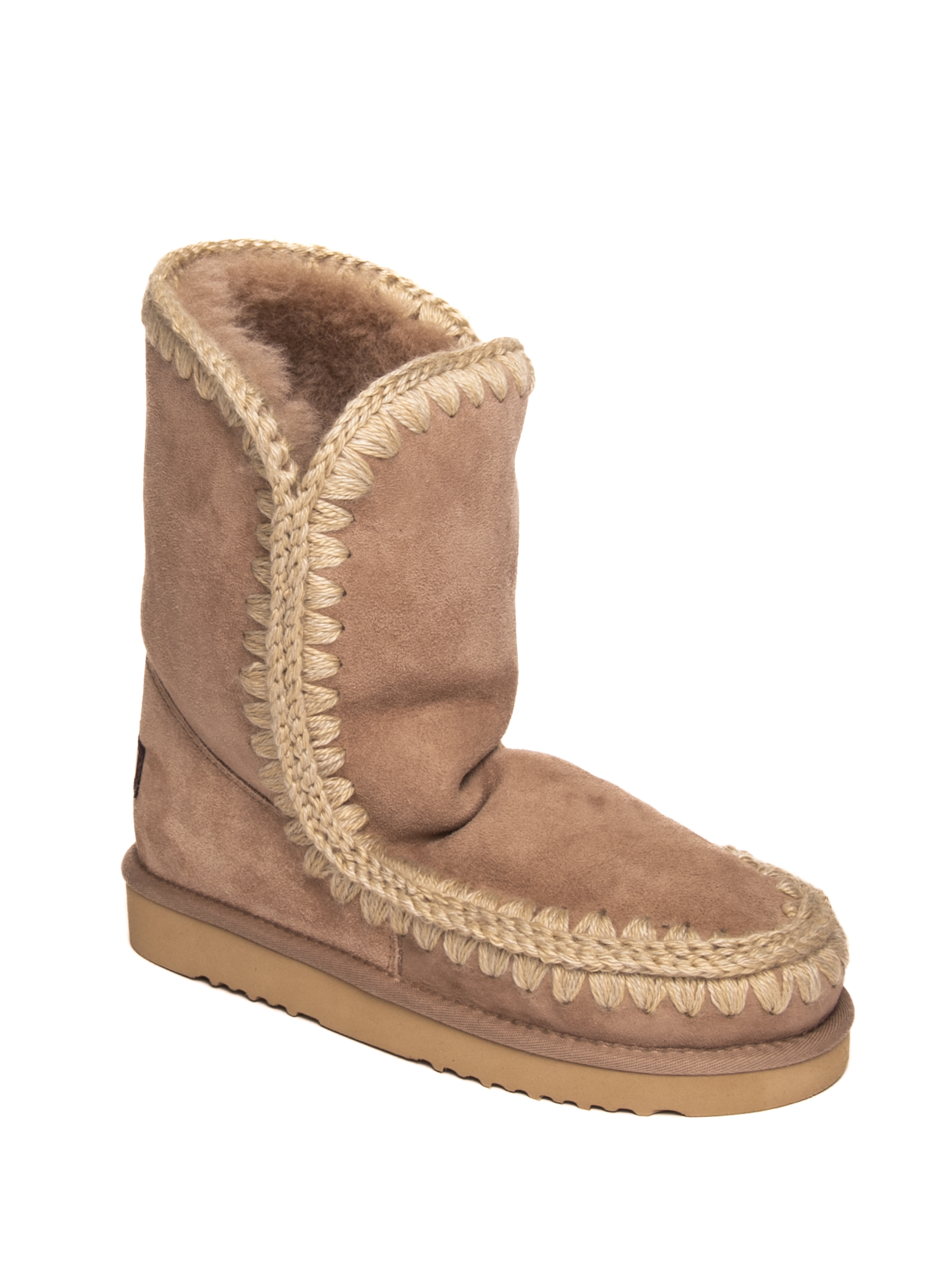 Ankle boot made of real sheepskin. Crochet wool stitching detail. Reinforced heel with logo. EVA and rubber bottom. 24cm high leg. Rubber sole