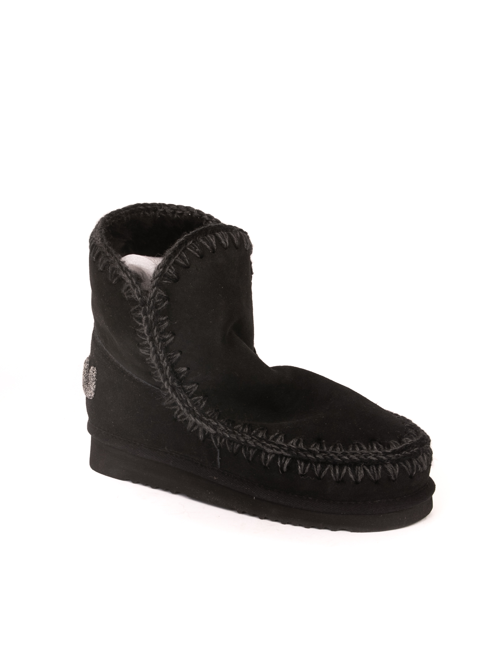 Ankle boot made of real sheepskin. Crochet wool stitching detail. Reinforced heel with logo. EVA and rubber bottom. 24cm high leg. Rubber sole