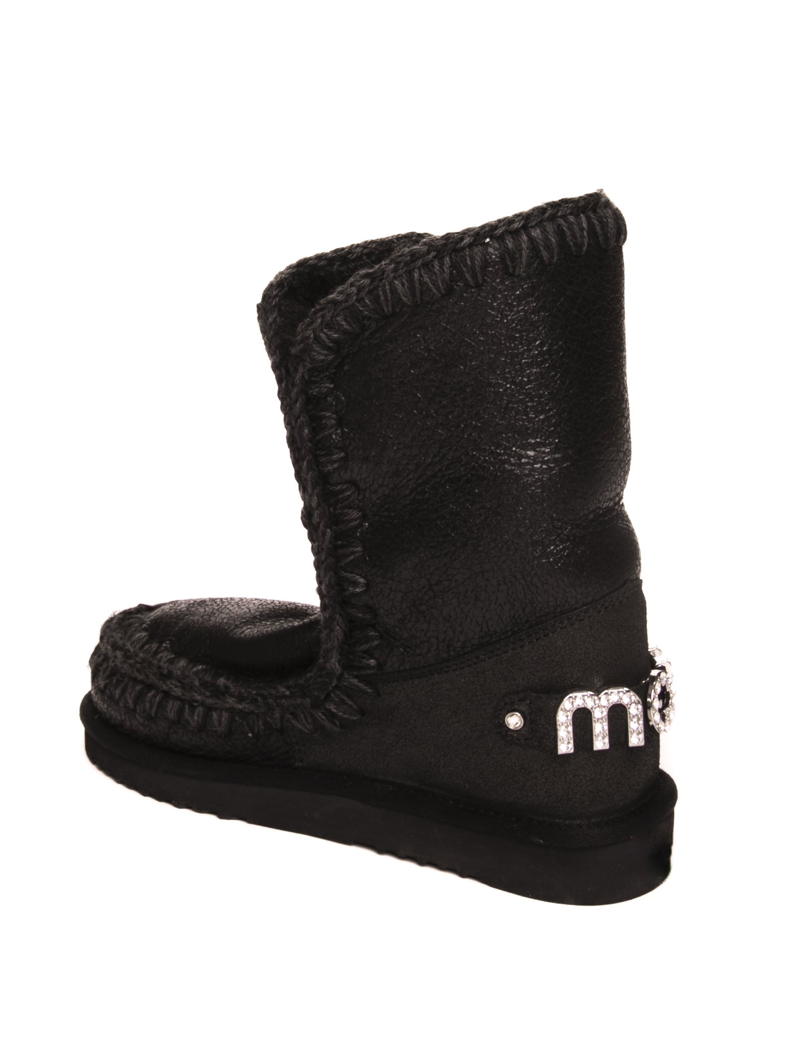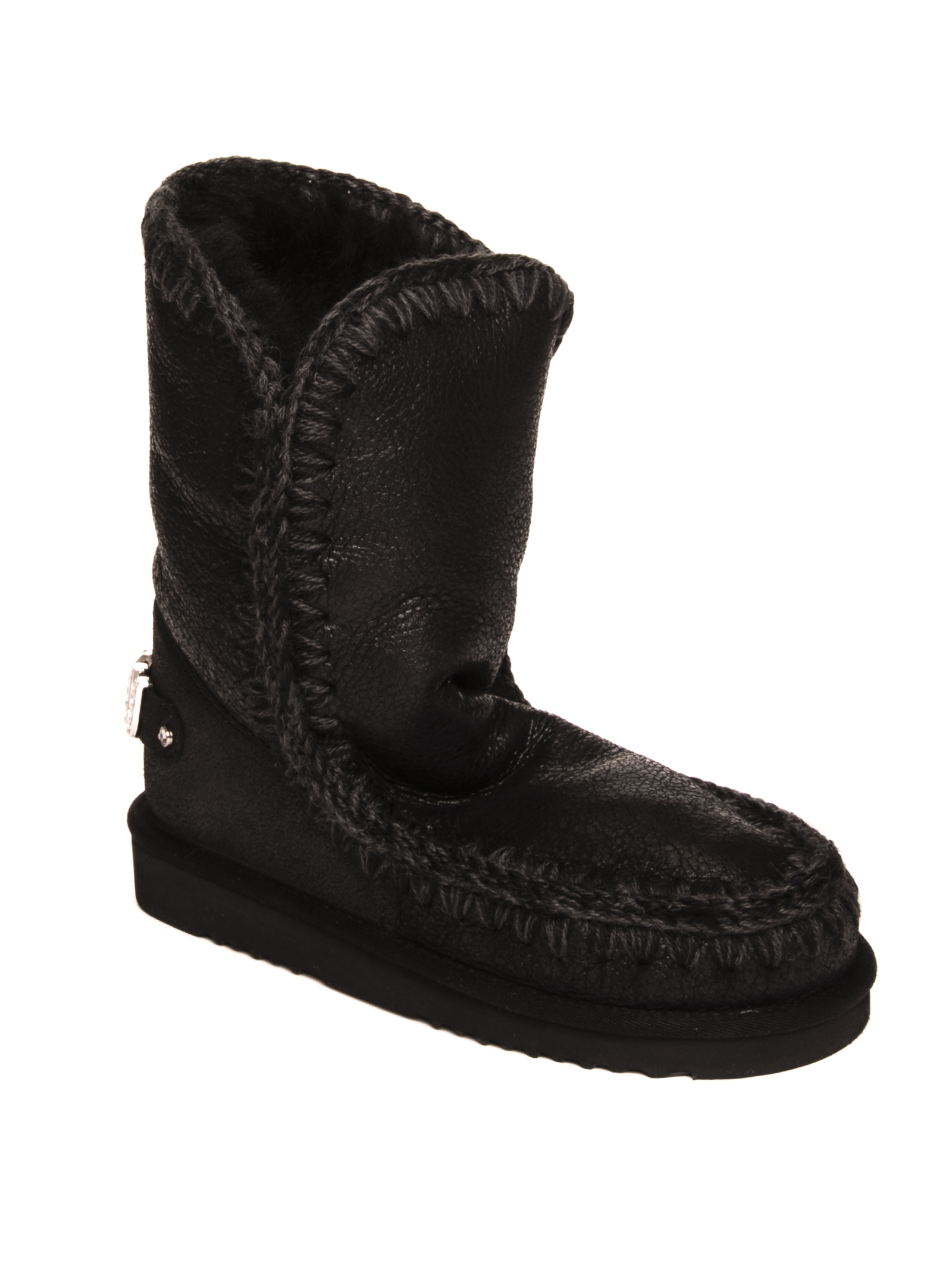 Leather ankle boot. Sheepskin lining. Tone-on-tone wool stitching. Upper height 24 cm. Logo writing on the back