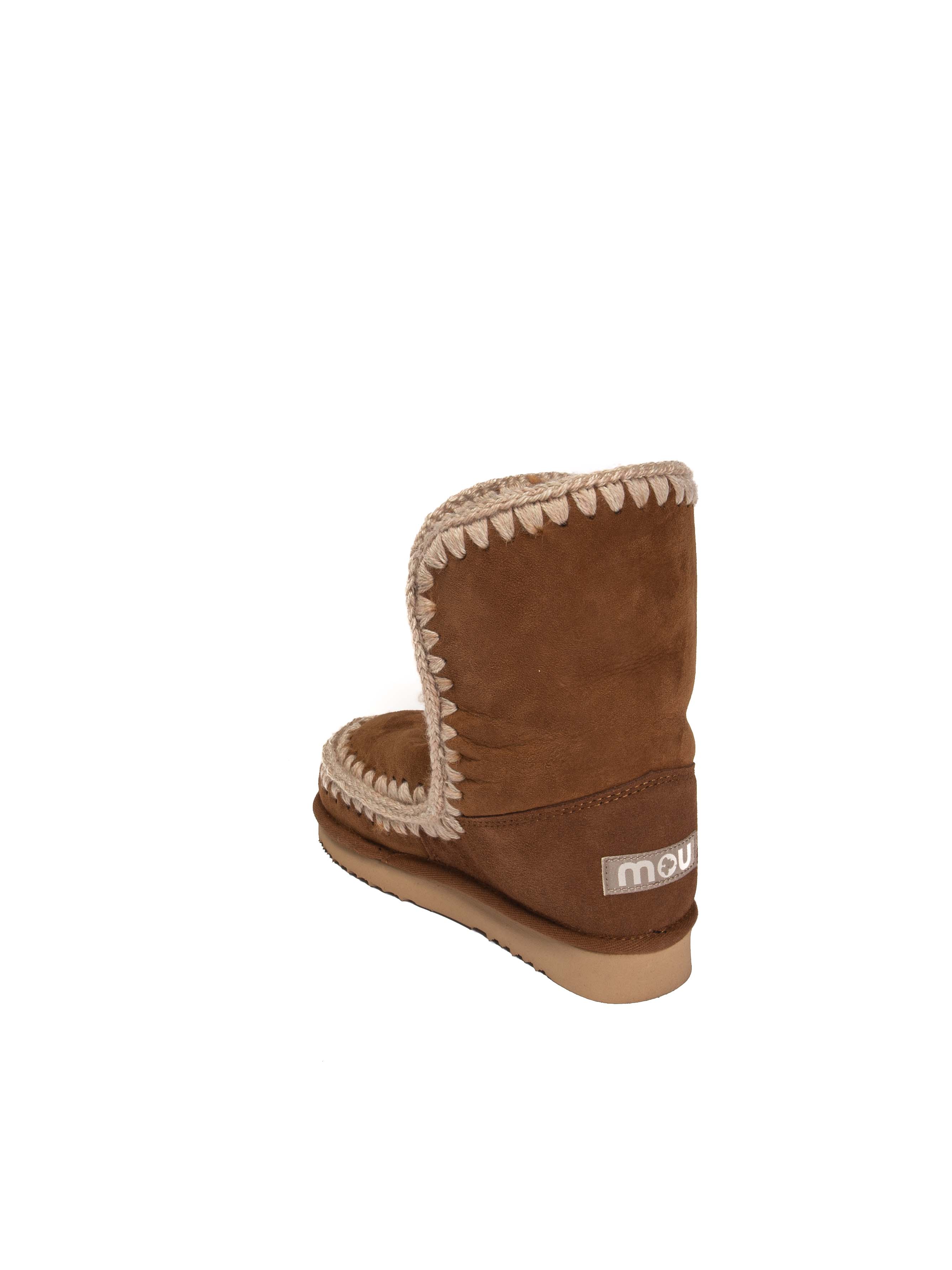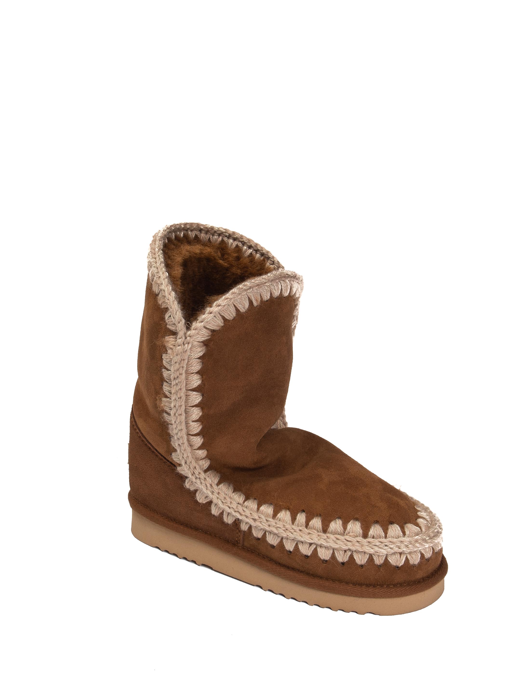 Ankle boot made of real sheepskin. Crochet wool stitching detail. Reinforced heel with logo. EVA and rubber bottom. 24cm high leg. Rubber sole