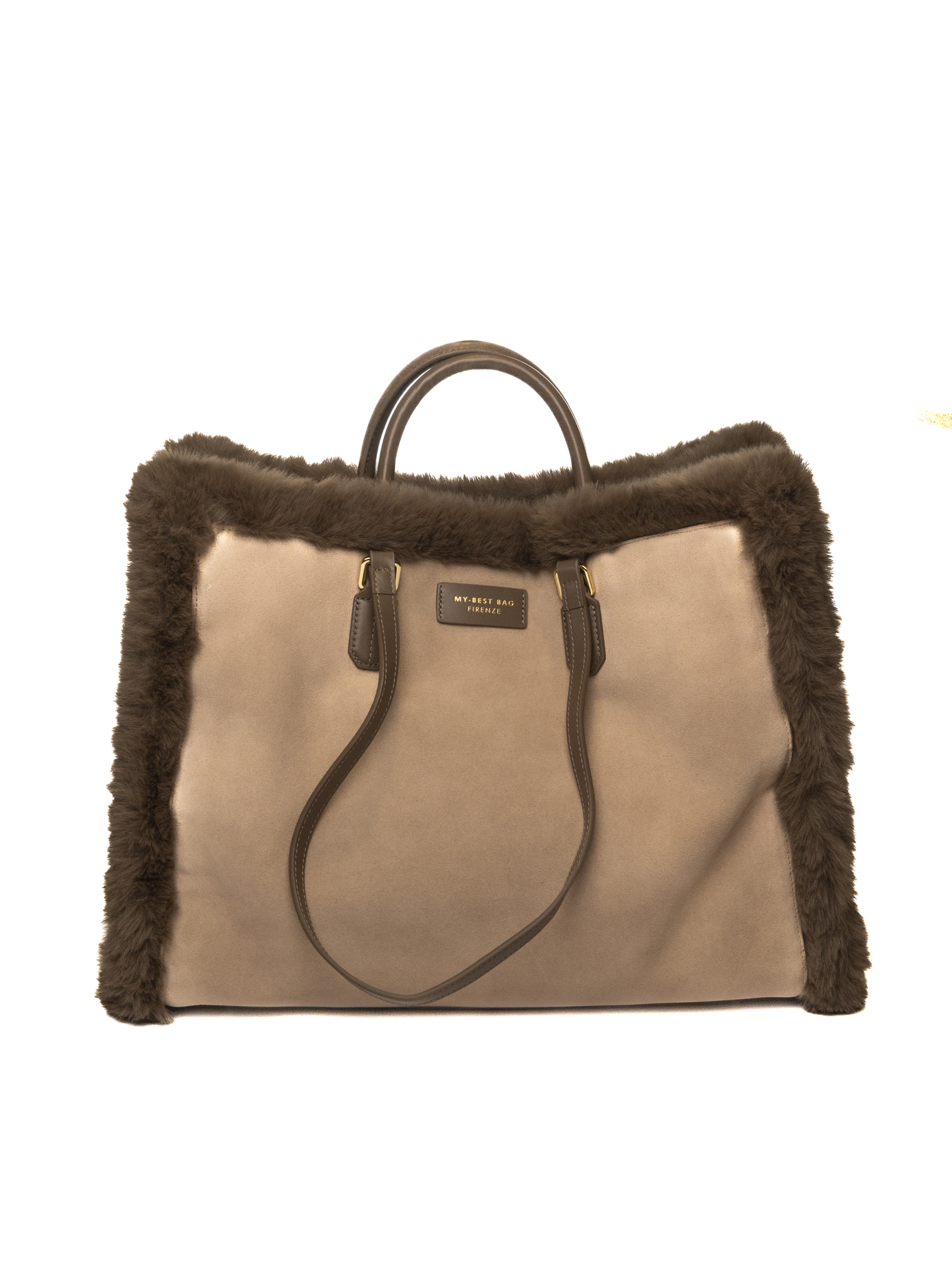 The My-Best Bag tote bag in taupe leather with soft brown fur trim is the ideal accessory for the winter season.