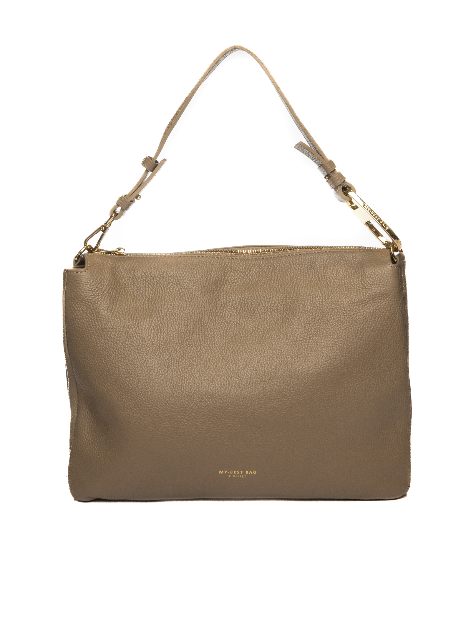 The My Best Bag bag in soft, beige hammered leather is the ideal accessory for those who love refined and timeless simplicity.