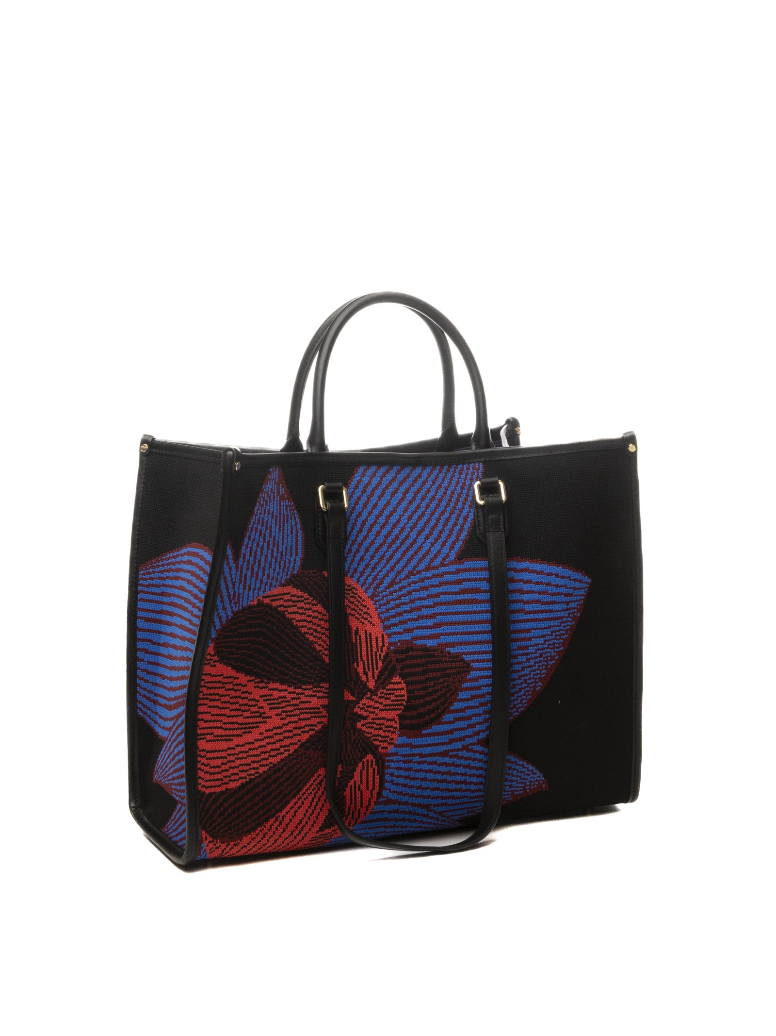 The bag shown in the image is the Atena Biophilia Bouquet from Florentine brand My Best Bag, a shopper that expertly blends the allure of Made in Italy craftsmanship with a bold, contemporary graphic design.