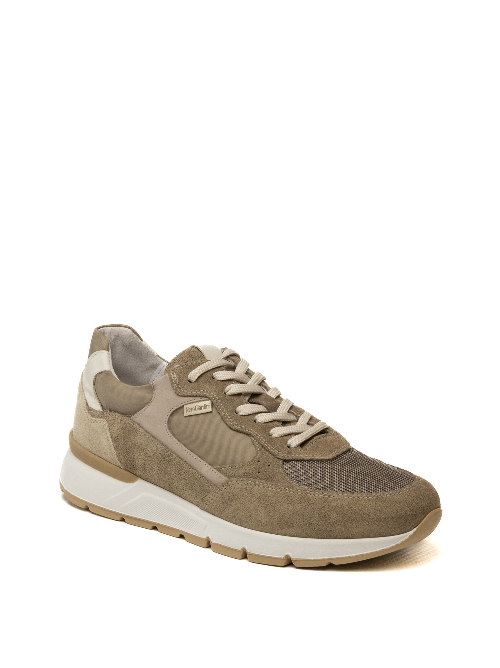 NeroGiardini men's sneaker, Arold Velo model in Velo colorway, a footwear piece with a dynamic and contemporary design that celebrates Made in Italy excellence through a refined combination of textures and natural tones.
