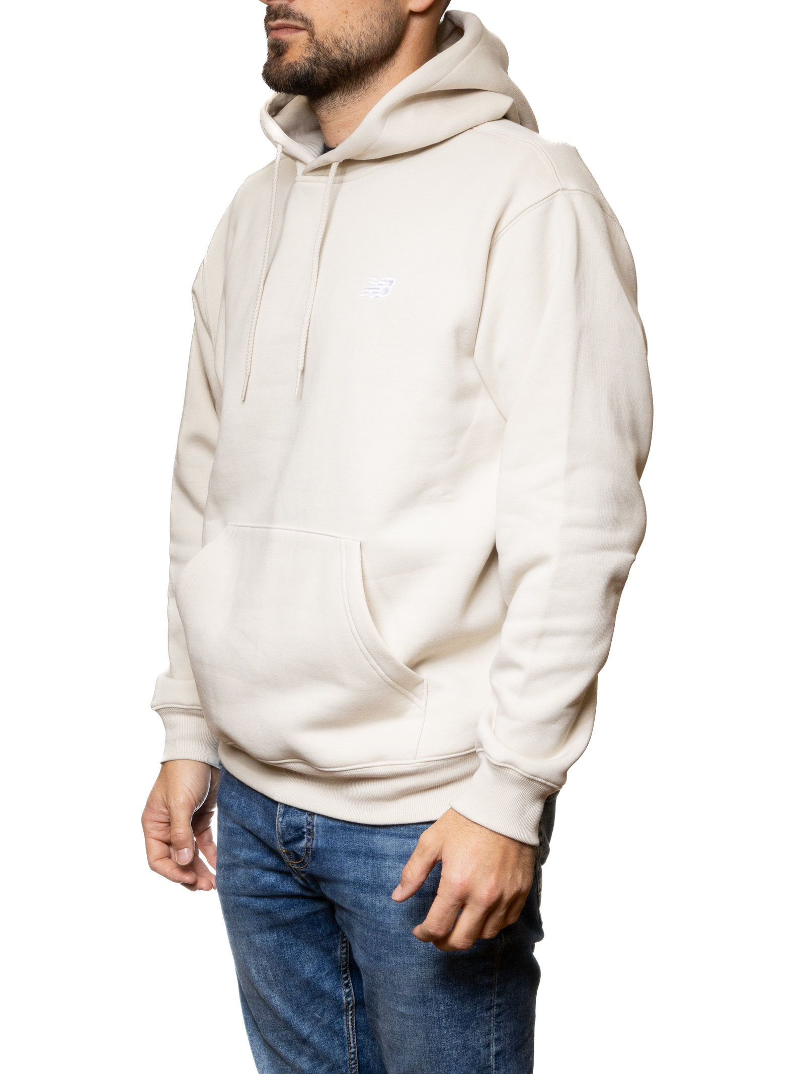 The adjustable hood and kangaroo pocket combine functionality and style, while the embroidered NB logo on the chest adds a distinctive and authentic touch.