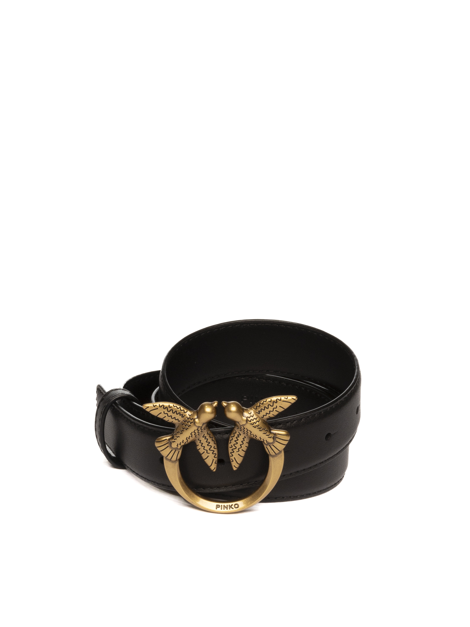 The Pinko Love Birds black/gold leather belt is the perfect expression of contemporary elegance with a touch of glamour.