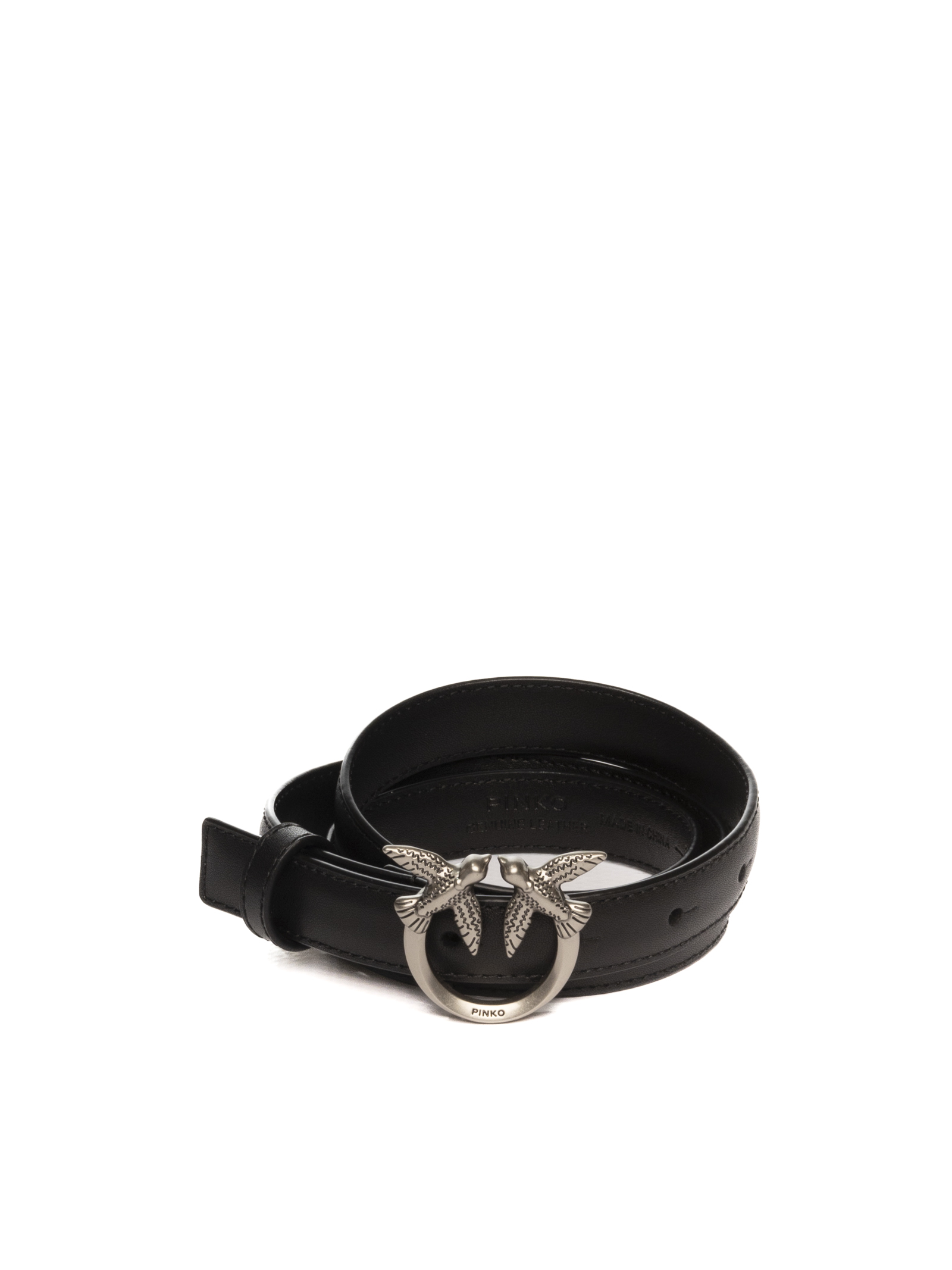The Pinko Love Birds belt in black/silver leather represents the perfect balance between classic elegance and modern design.