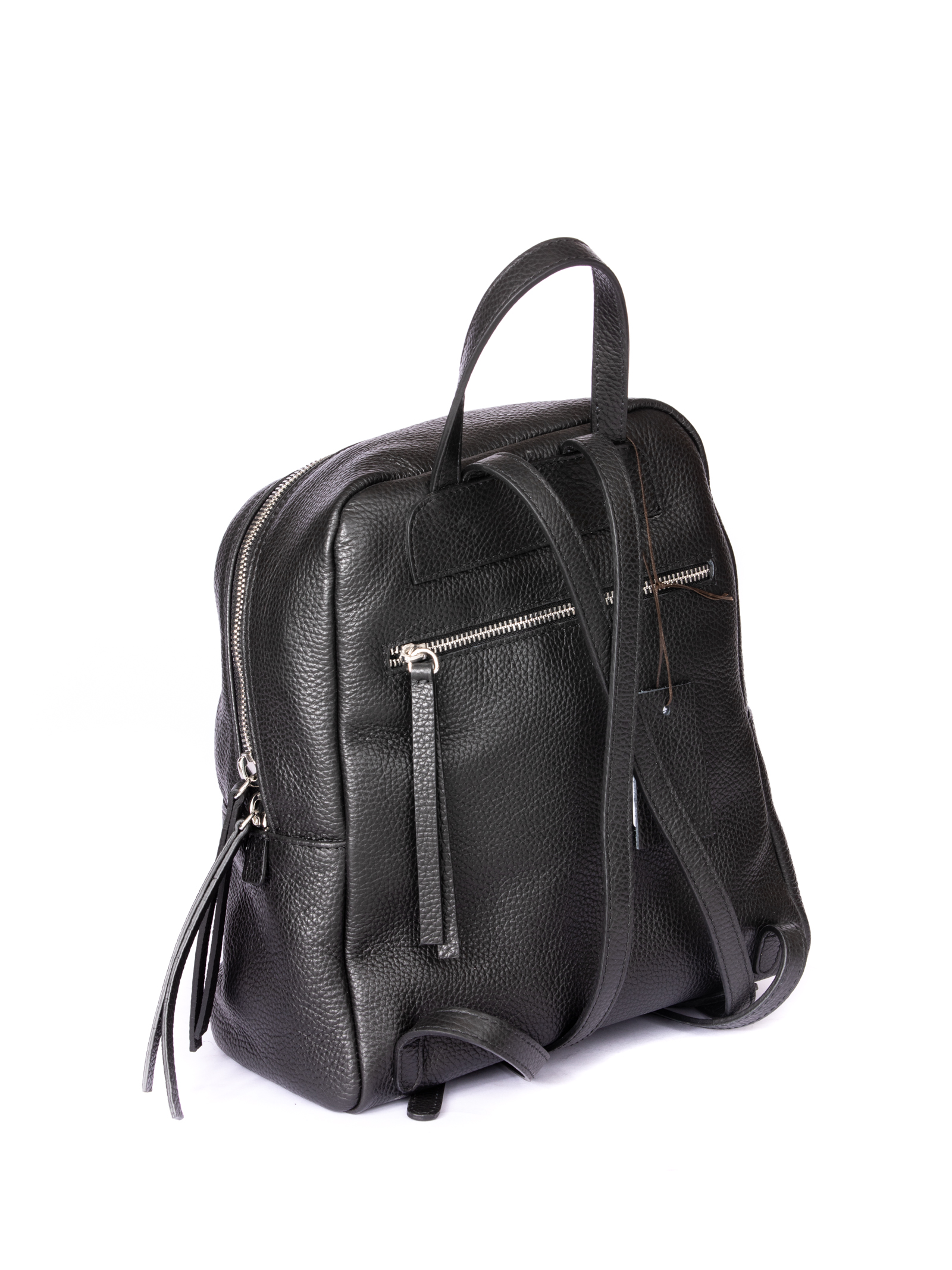 This black leather backpack features a modern and functional design, crafted from high-quality genuine hammered leather. The sturdy yet soft-touch texture ensures strength and durability, making it perfect for everyday use, travel, work, or college.