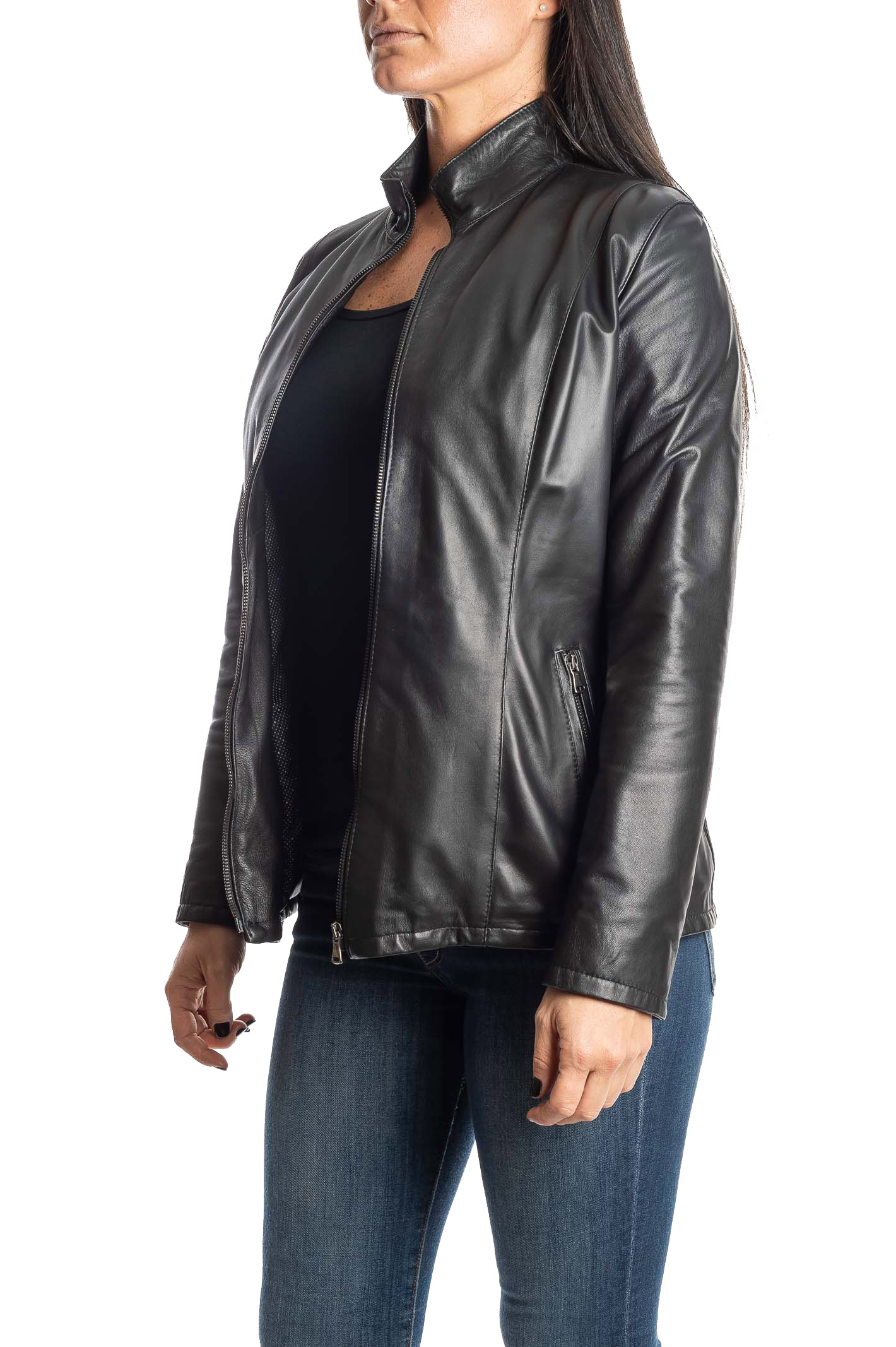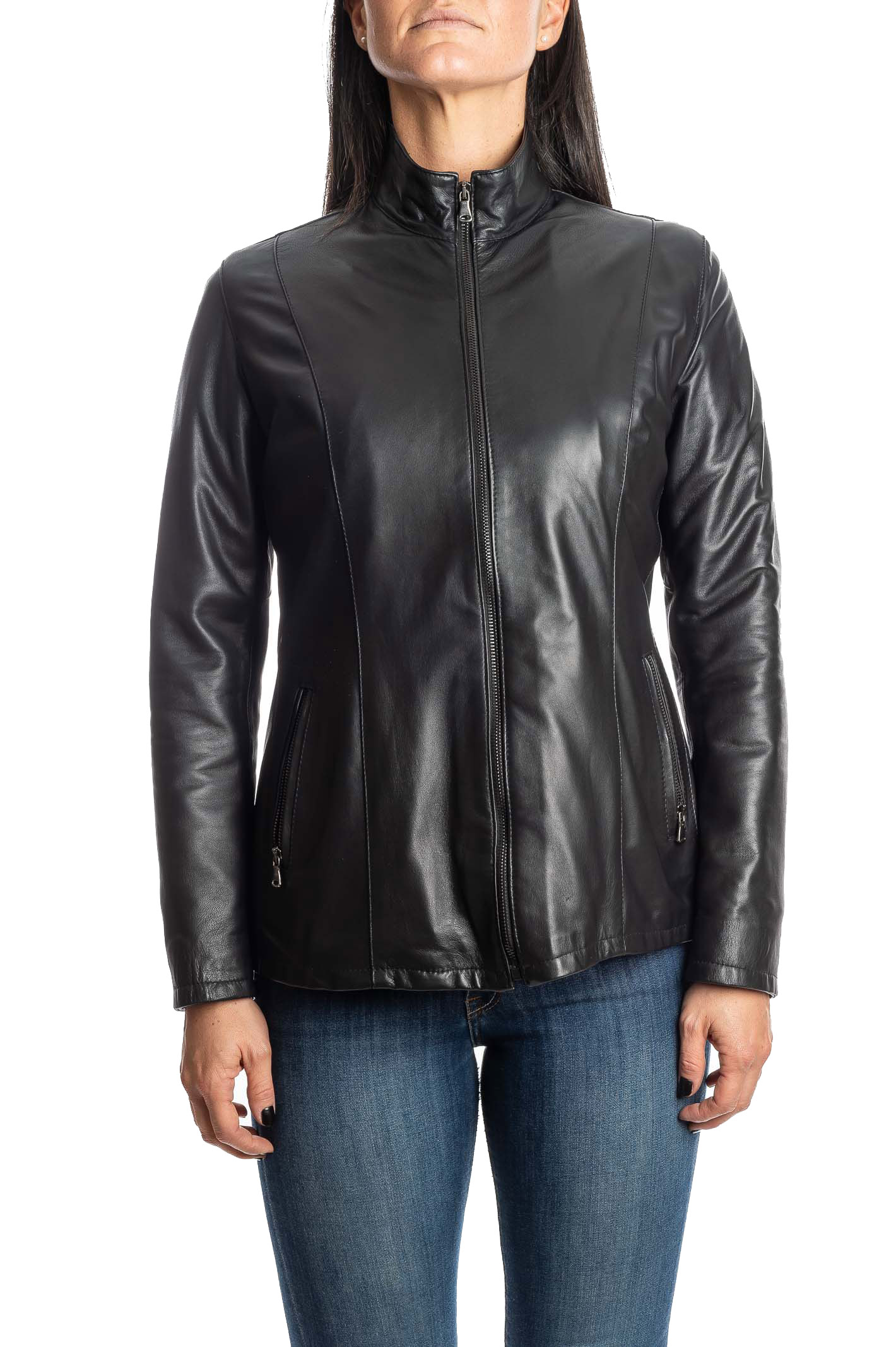 Leather jacket. Chest zip pockets. Zip pockets. Made in Italy.