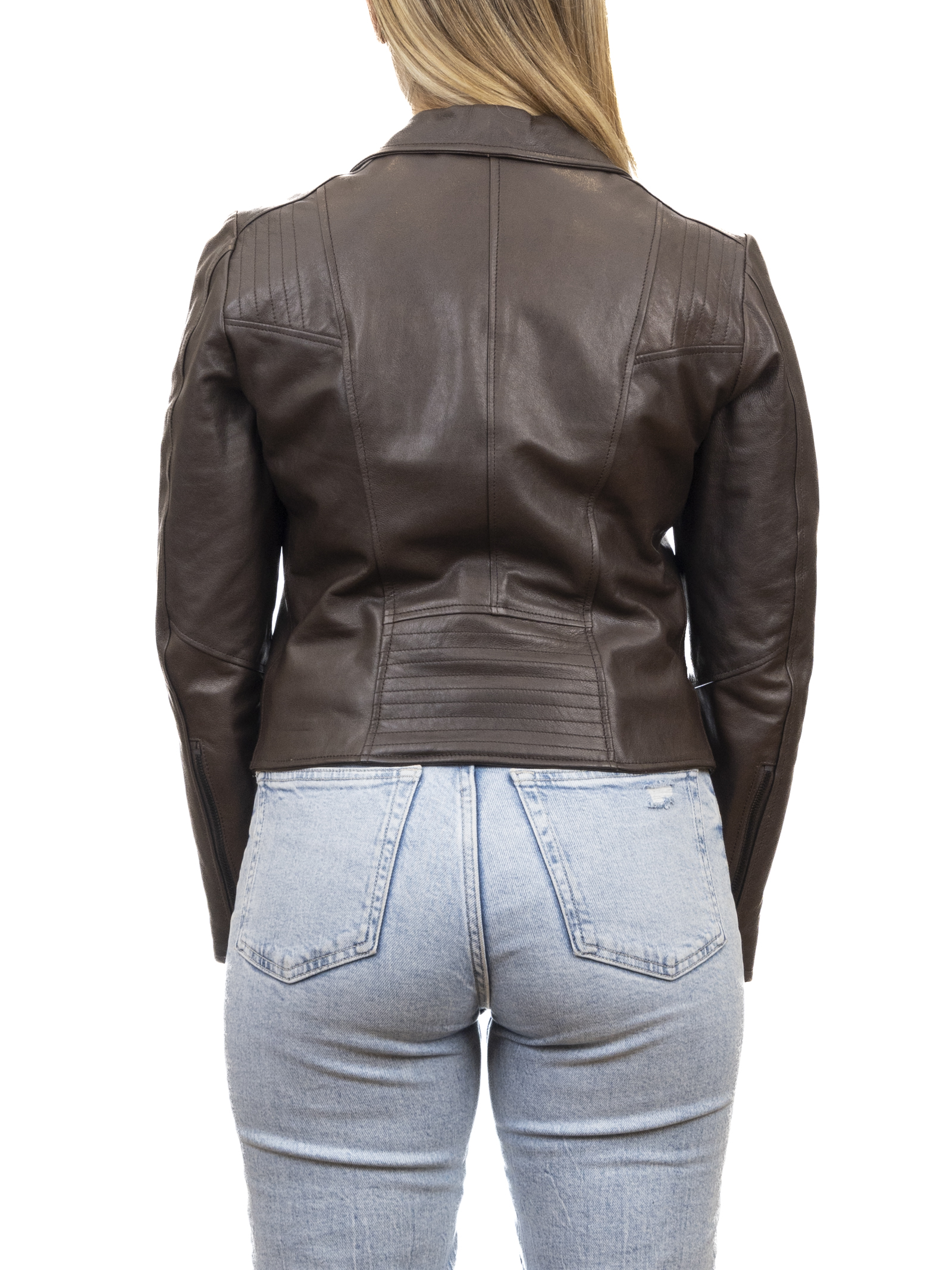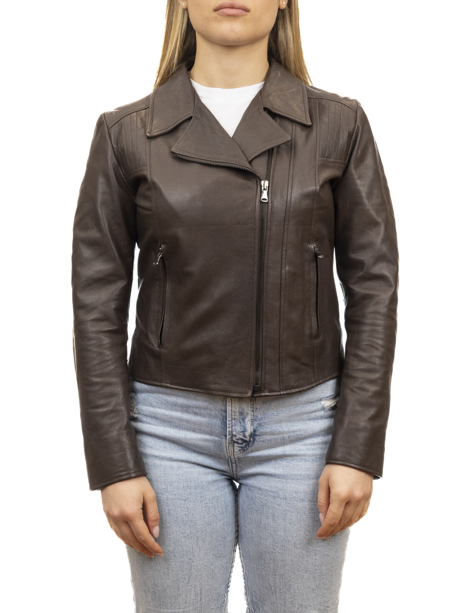 Genuine leather biker. Zip closure. Pockets with zip. Made in Italy.