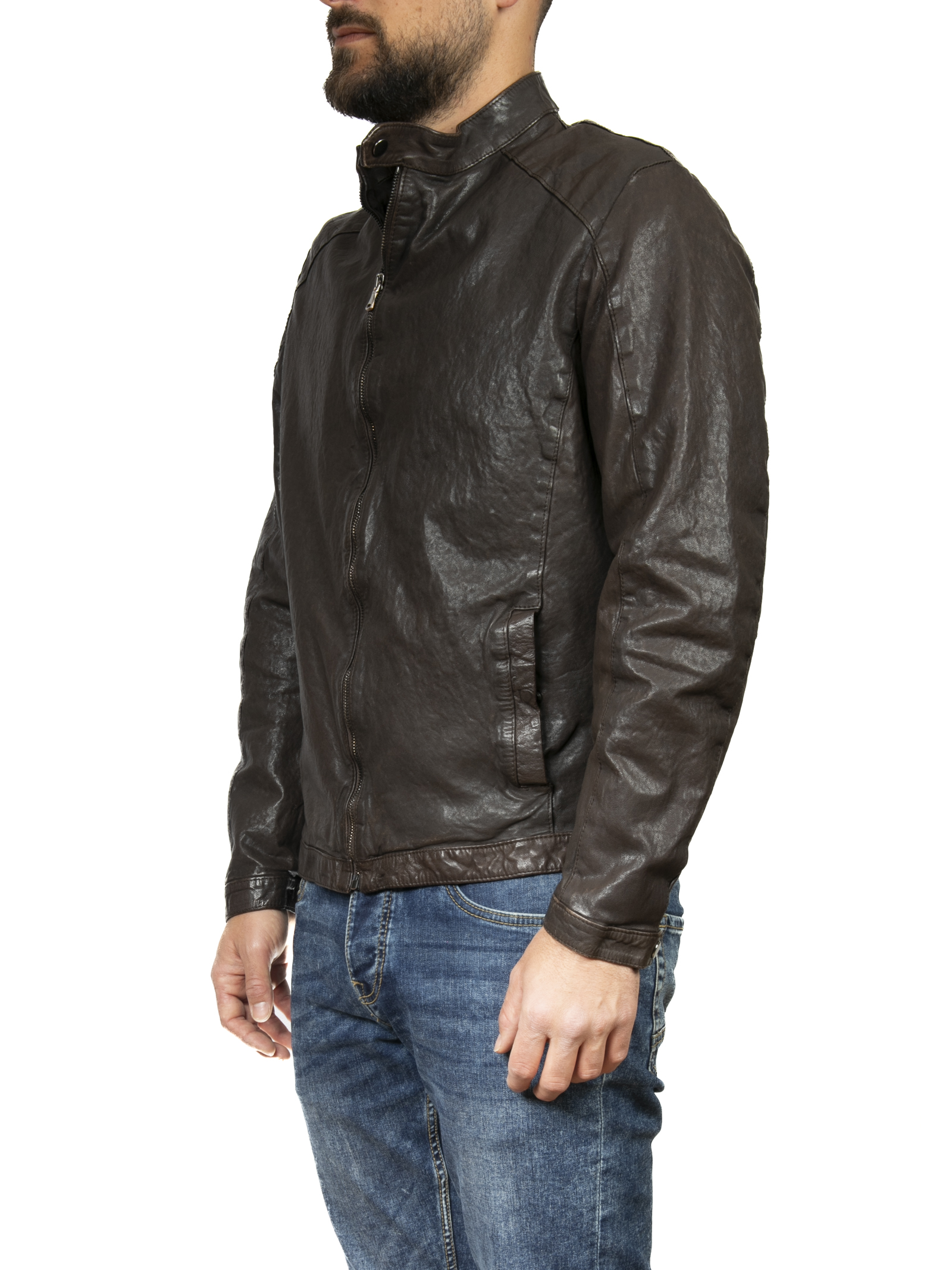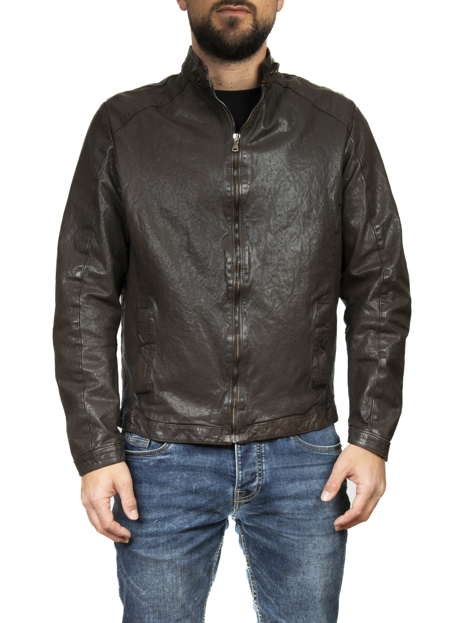 Leather jacket. Zip closure. Collar with button. side pockets. Nylon lining. Made in Italy.