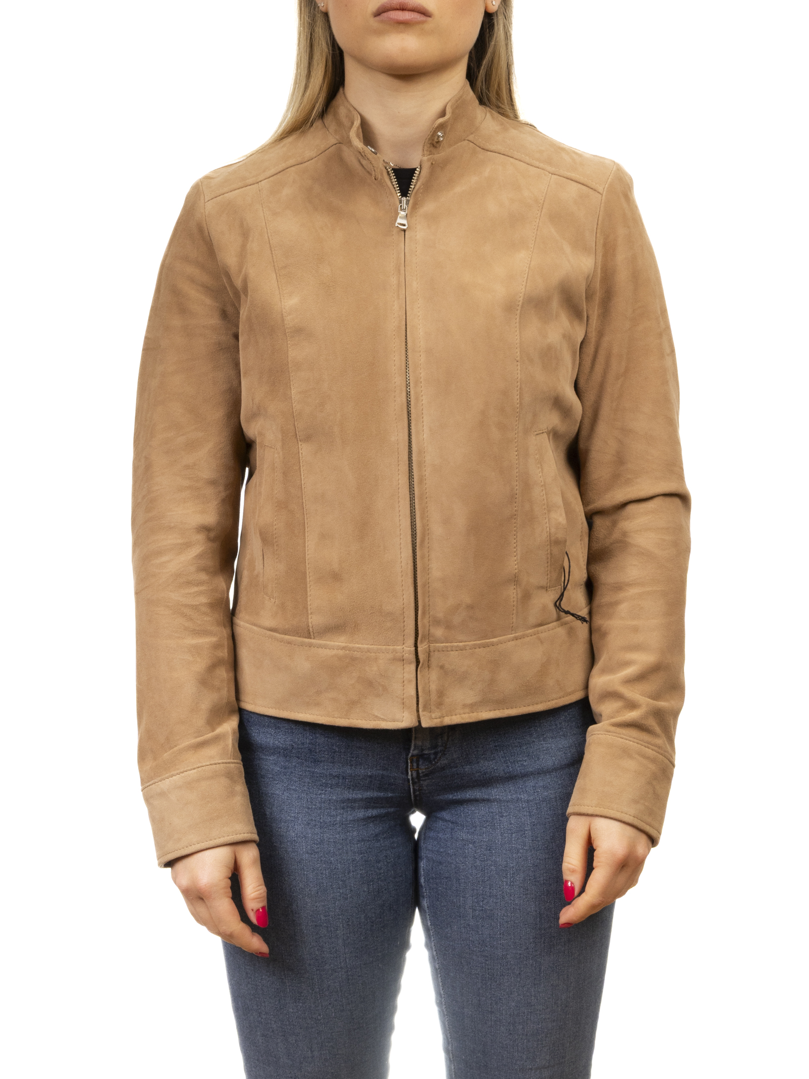 Suede jacket. Raw cut pockets. Zip closure. Made in Italy.