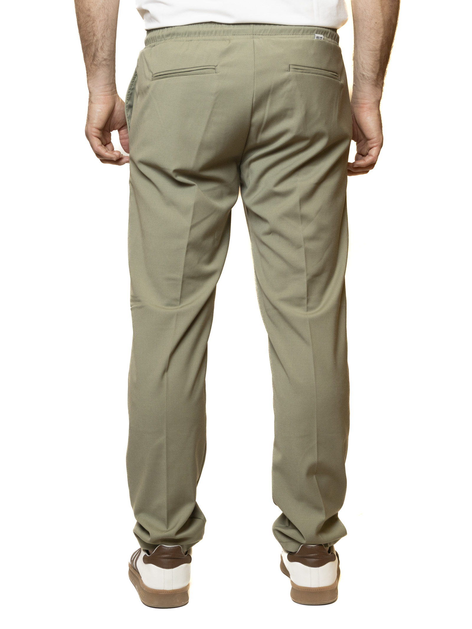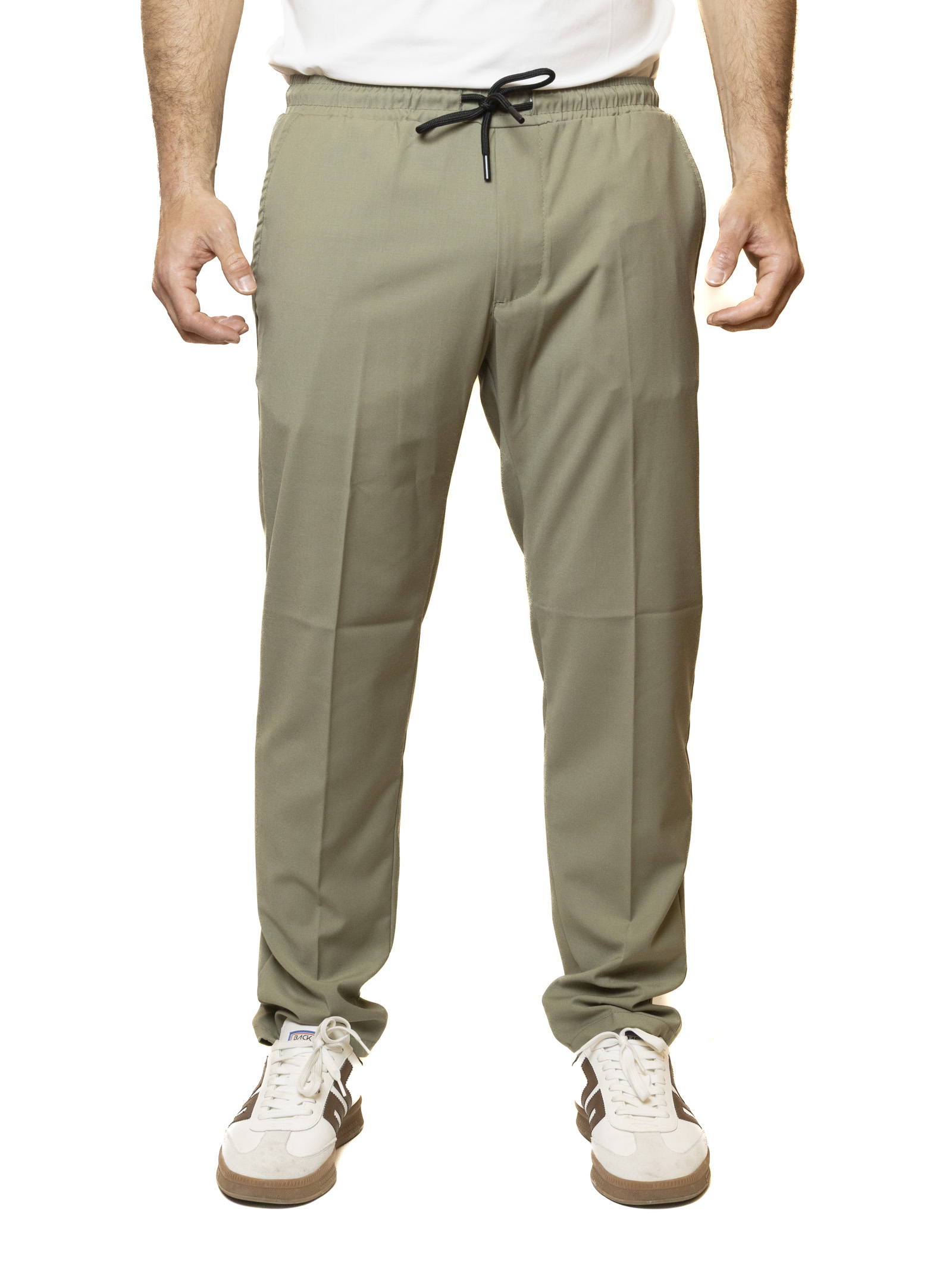 The design features an easy-chic aesthetic that combines tailored fit with sporty practicality, thanks to the elastic waistband with an adjustable contrasting drawstring that ensures a personalized fit. Defined by a contemporary Slim Fit that slims the figure, it features the iconic front slant pockets and back welt pockets. The green shade is extremely versatile: ideal when paired with a white t-shirt for a clean look, or with earth tones for a more sophisticated outfit. These are the ideal pants for those seeking maximum comfort without sacrificing a distinctive style, perfect for quality leisure time.