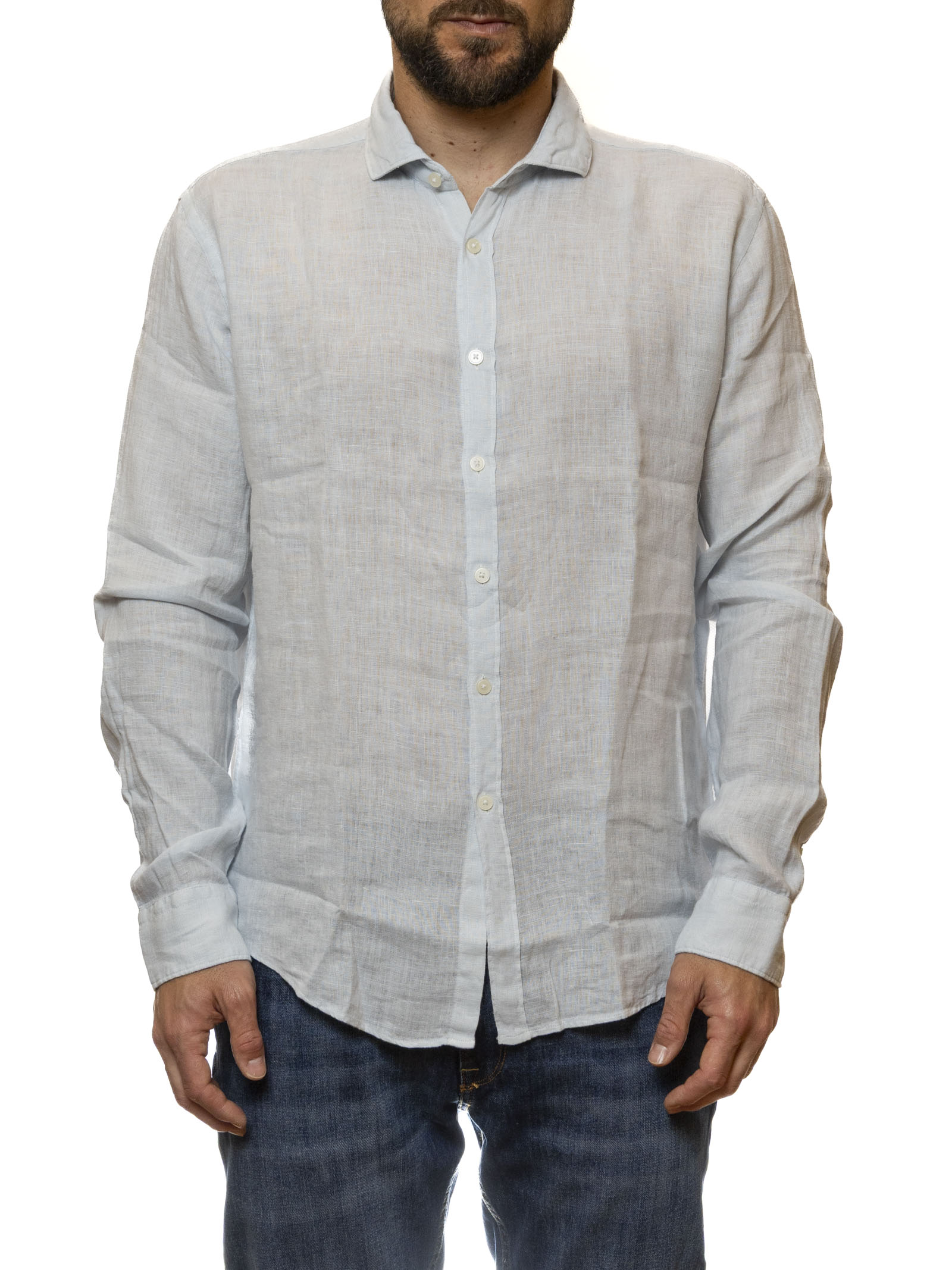 This QB24 long-sleeve shirt is a celebration of Mediterranean elegance, presented in a delicate and luminous shade of Light Blue. Crafted from a premium cotton and linen blend, this combination enhances the softness of cotton and the natural freshness of linen. The fabric's slub texture, with its characteristic and subtle irregularities, gives the shirt a refined and breathable look, making it the ideal garment for those seeking impeccable style even on the hottest days.