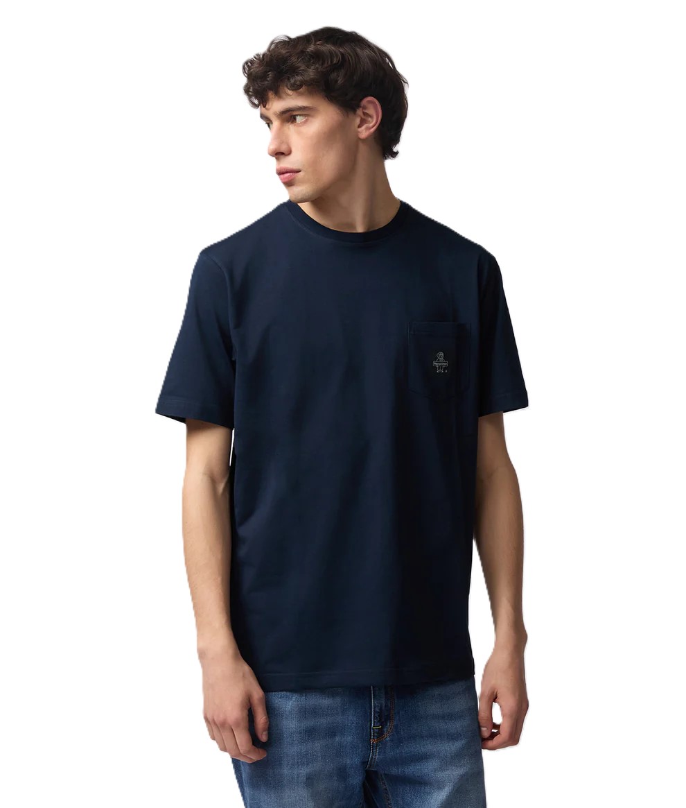 The style, identified by the item T22600-PIERCE-F02800, maintains the line's iconic features: the functional chest pocket embellished with the original RefrigiWear logo patch. The Regular Fit ensures a modern and well-proportioned cut, making it a versatile essential for any man's wardrobe. Thanks to its classic navy blue, this T-shirt is perfect paired with washed denim, beige chinos, or cargo Bermuda shorts for a refined and distinctive everyday look.
