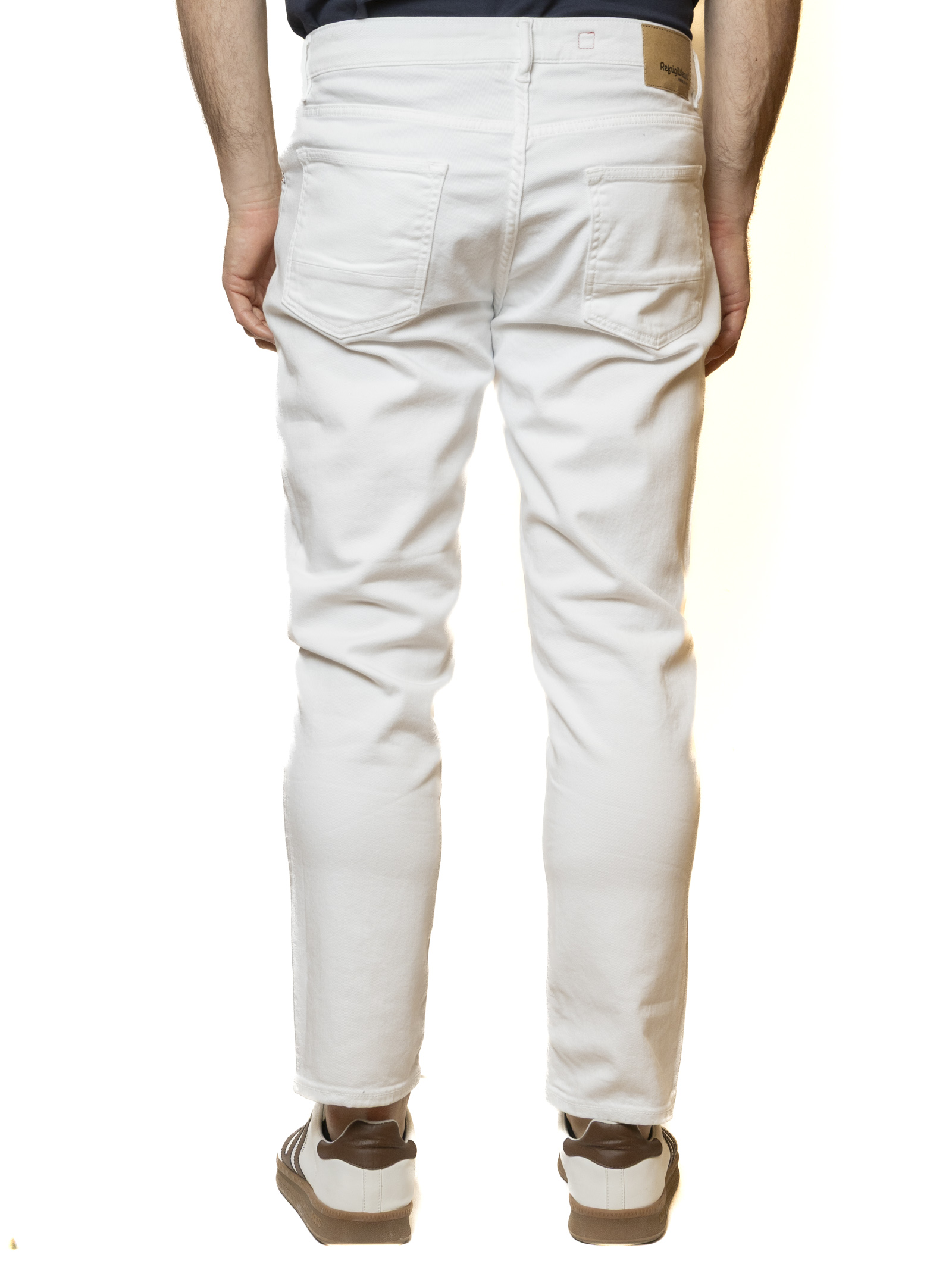 These five-pocket jeans by REFRIGIWEAR stand out for their crisp white color, a fresh and essential shade, the undisputed symbol of men's summer elegance. Crafted from premium stretch cotton denim, the piece offers the perfect balance between durability and comfort: the natural fiber ensures optimal breathability all day long, while the stretch component guarantees superior freedom of movement, maintaining a flawless silhouette.