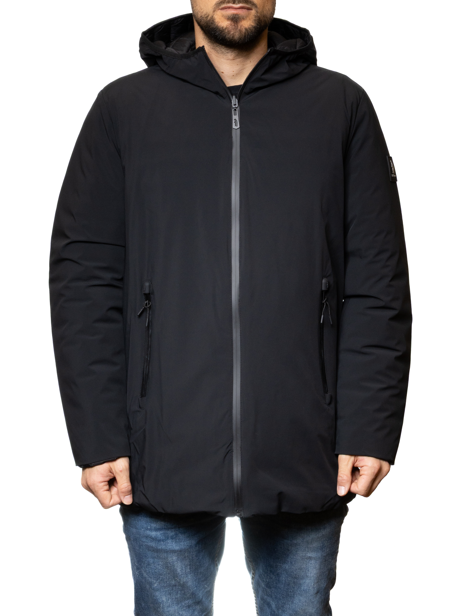 Men's jacket with a modern and minimal design, crafted from technical materials designed to offer protection from the elements without sacrificing comfort. The smooth, compact surface creates a clean, urban look, perfect for everyday wear.
