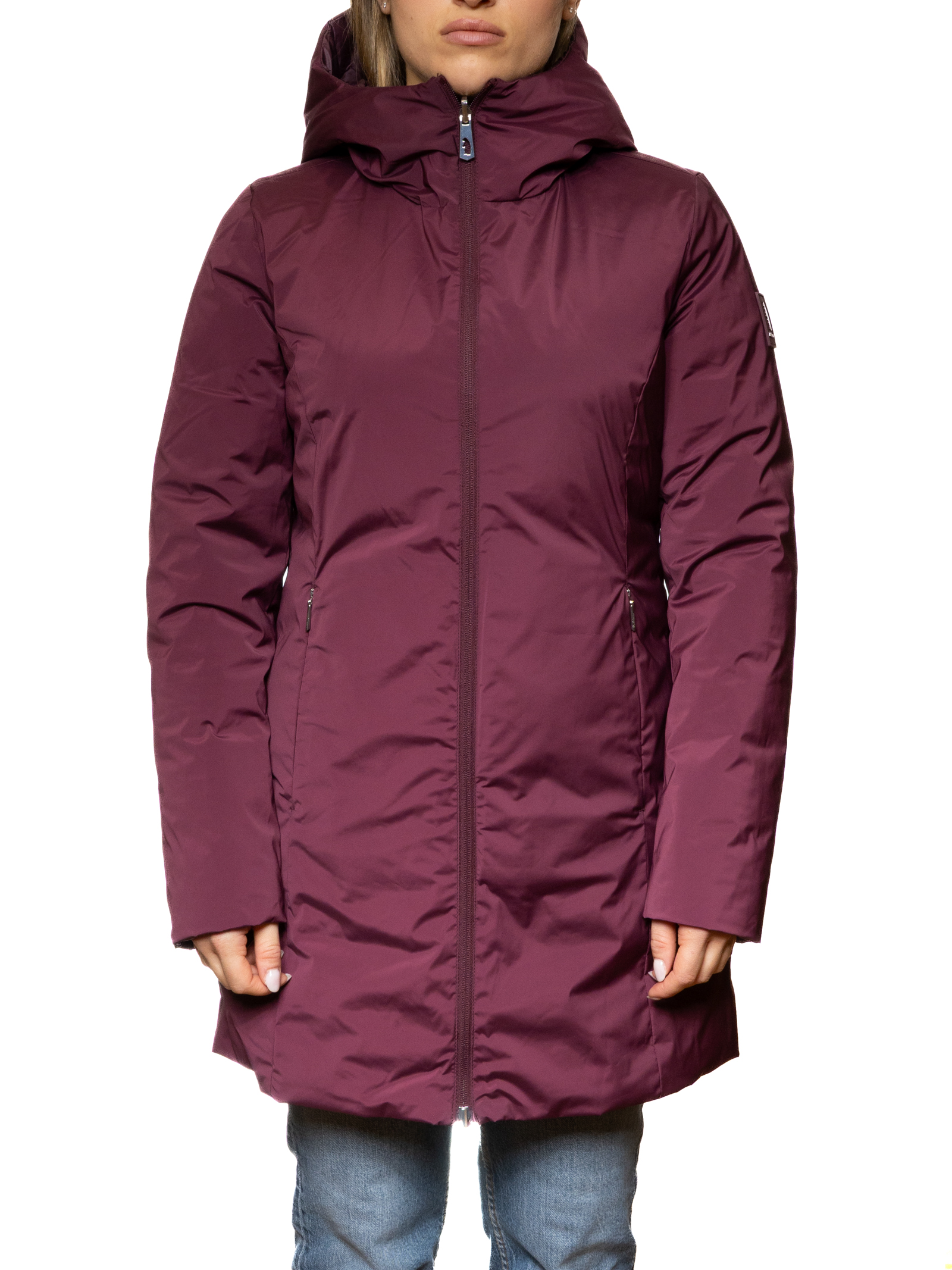 The elegant and easily combinable burgundy color makes this down jacket a versatile and essential winter staple.