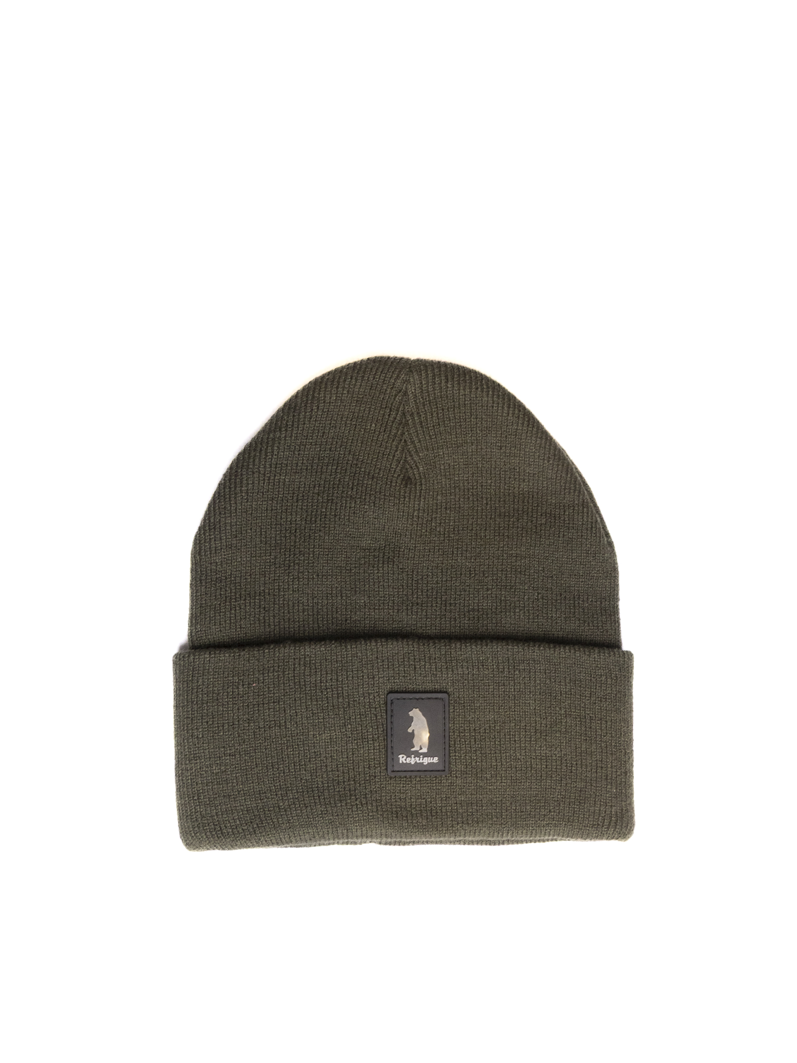 The military green cuffed hat with a Refrigue logo on the front is the essential accessory for facing the cold season in style.
